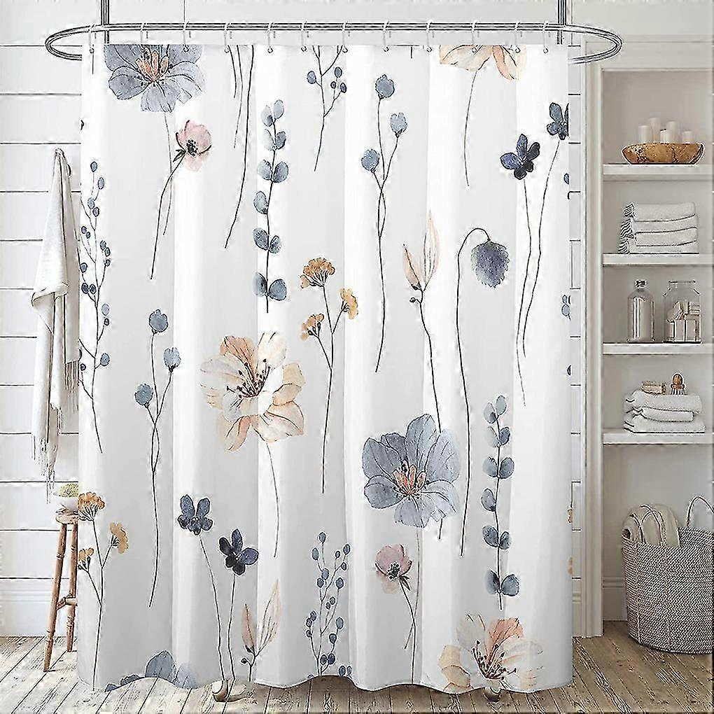 Waterproof Shower Curtain Set with Watercolor Flowers, Mold Resistant Beige