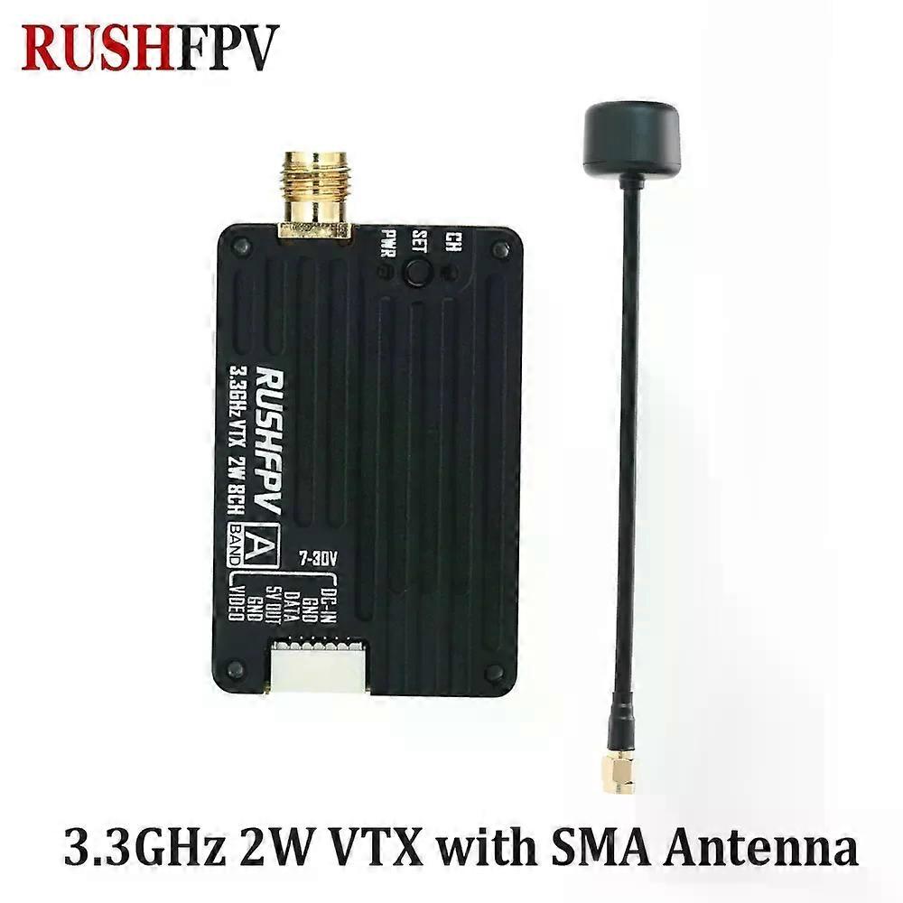 RUSHFPV 2025 New 3.3GHz 2W VTX with SMA Circular Polarized Antenna Supports IRC Tramp Protocol for RC FPV Long Range Drone