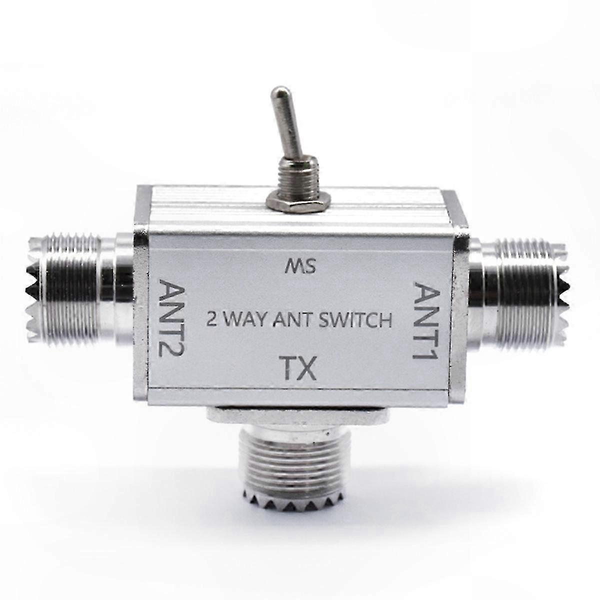 2-Way Coaxial Antenna Switch with 1 input and 2 outputs. Rotary switch featuring OFF position and ground protection. Compatible with SO-239 connectors. Features reverse protection to safeguard the antenna port and reduce risk of equipment damage. Switch orientation indicates the selected antenna, supporting configurations where one transceiver connects to two antennas. Specifications: SL-16/SO-239 Frequency Range: 1–30 MHz Maximum Power Handling: 100 W Dimensions: 73 × 58 × 25 mm (including connectors) Connector Type: SO-239 Color: Silver Material: Aluminum Alloy Package Includes: 1 × 2-Way Antenna Switch Note: Color may vary slightly due to lighting and screen settings. Dimensions are subject to a tolerance of ±1–3 mm.