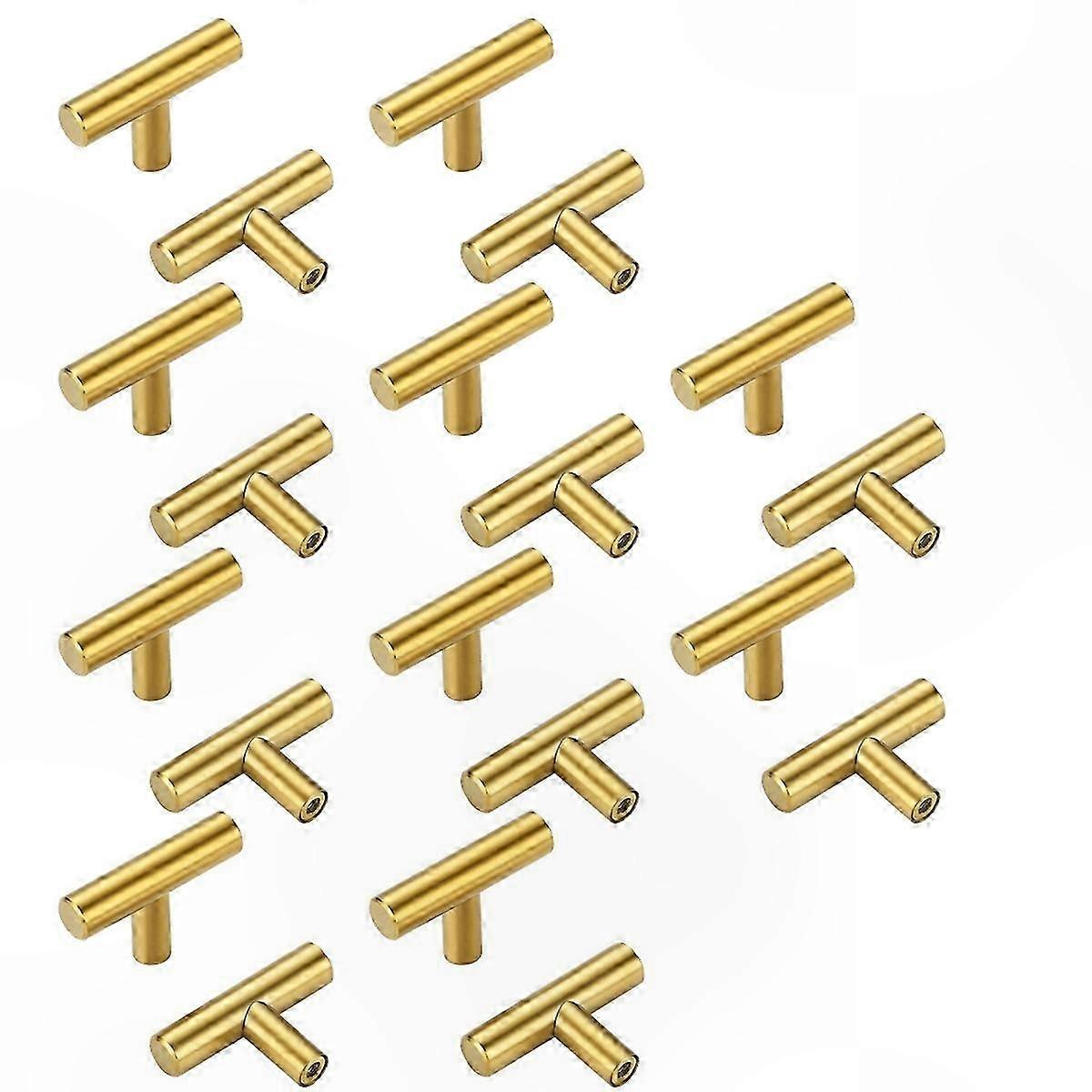20 Pack Gold Cabinet Handles, 2 Inch Brass Drawer Pulls, Single Hole T Bar Knobs for Furniture