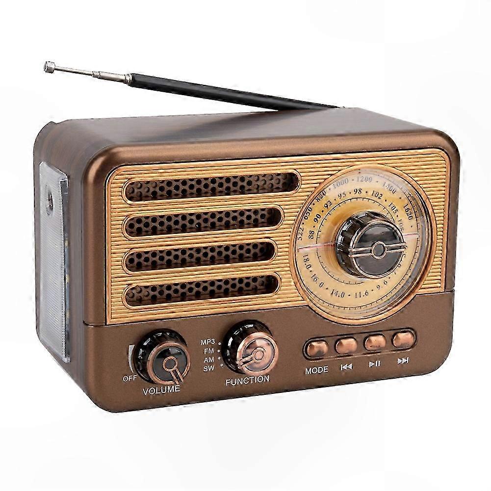 Bluetooth Vintage Radio Speaker with FM/AM, LED Flashlight, TF Card, USB, AUX Support