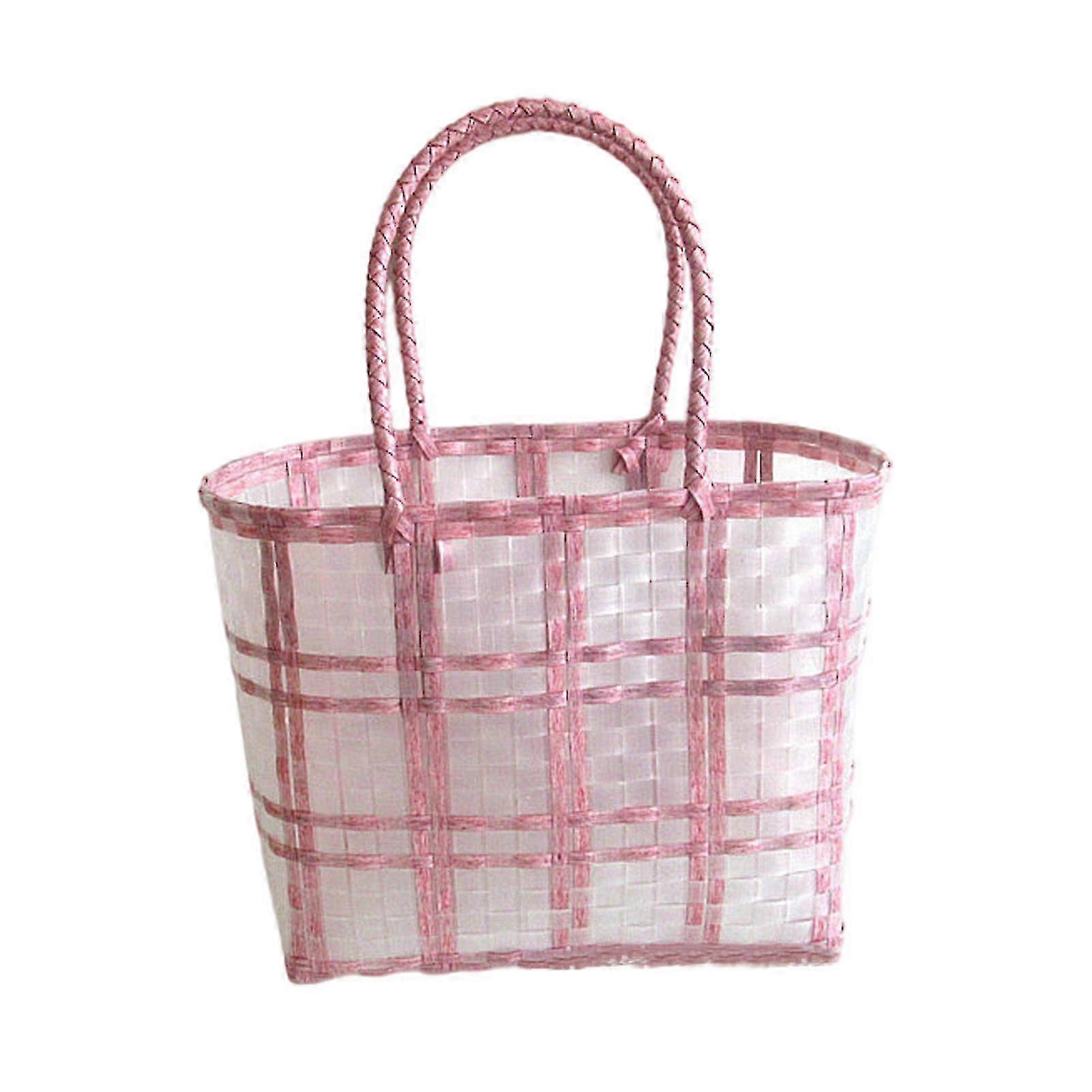 Vegetable Basket Large Capacity Waterproof Pvc Fruit Braid Hand-carrying Organizer Pouch For Home S Red