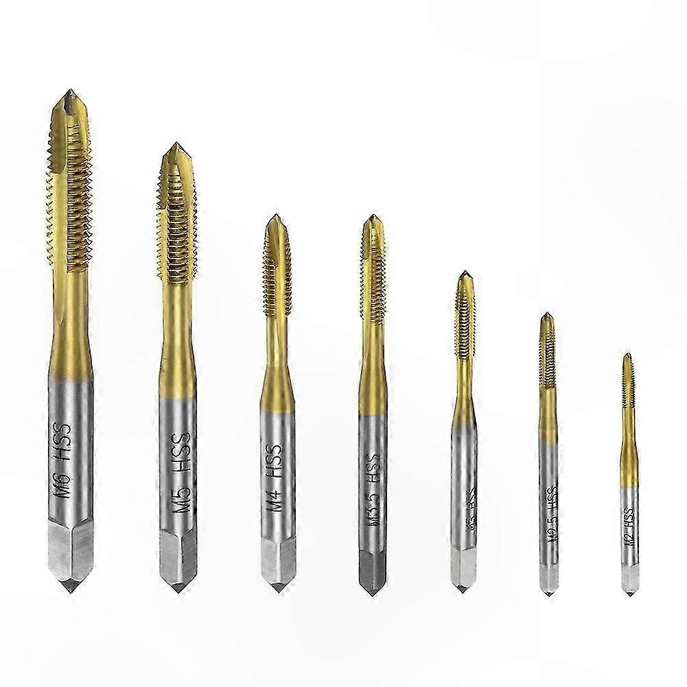 Titanium Coated Metric Thread Tap Set, 7pc Spiral Point Screw Taps for M2-M6 Sizes