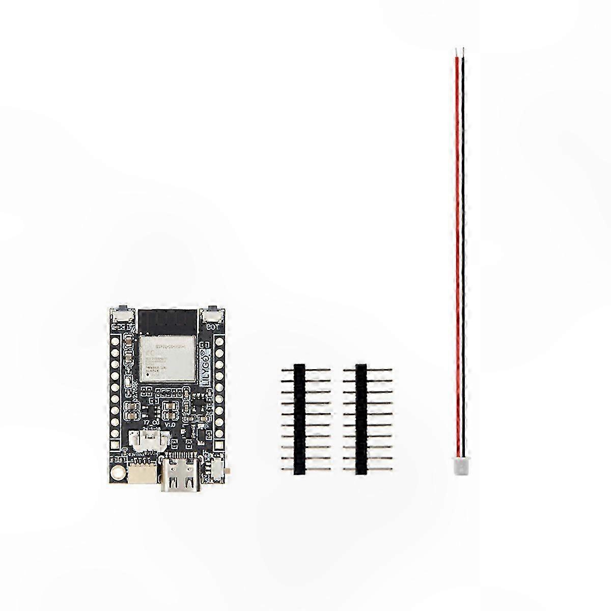 Advanced Connectivity: Experience wireless communication with WiFi 6 and Bluetooth 5 capabilities. This module ensures faster and more reliable connections for IoT and smart device projects. Integrated Charging Solution: Equipped with a TP4065 charging chip, this module supports battery management for portable and wearable technology applications. User-Friendly Design: Features an onboard BOOT and Reset switch to simplify development, troubleshooting, and configuration adjustments. Versatile Applications: Suitable for smart home devices, robotics, and other IoT solutions requiring wireless communication and power management. Product appearance, color, and printed text may vary between batches without affecting functionality. Specification: A – Internal Antenna / B – External Antenna Color: As Shown Material: PCB Package Contents: 1 x T7-C6 ESP32-C6-MINI-1 Module Kit Note: Lighting conditions and display settings may cause slight color variation between the image and the actual product. Measurement tolerance is +/- 1–3 cm.