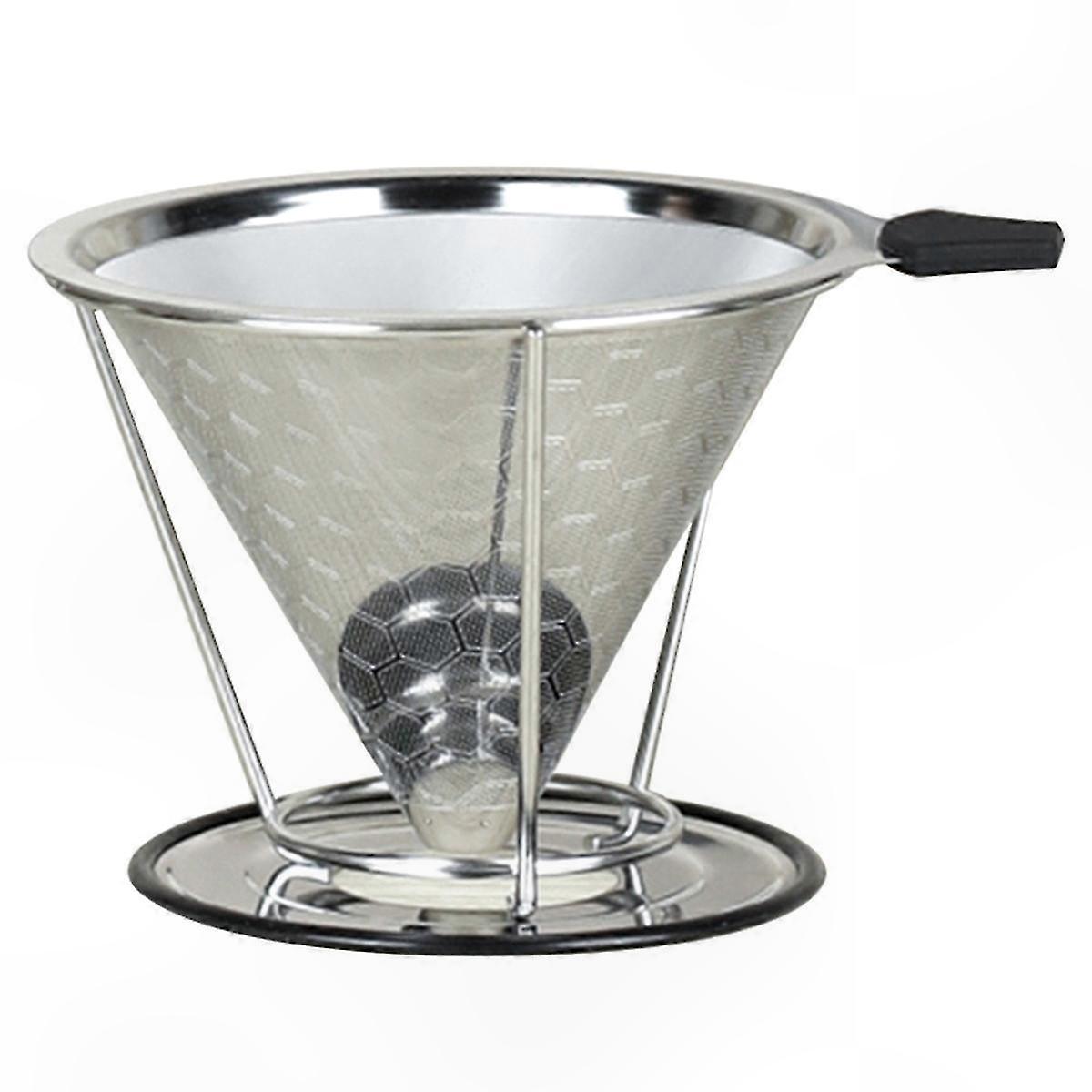 Stainless Steel Coffee Drip Filter with Double Layer and Bracket for Hand Grinding