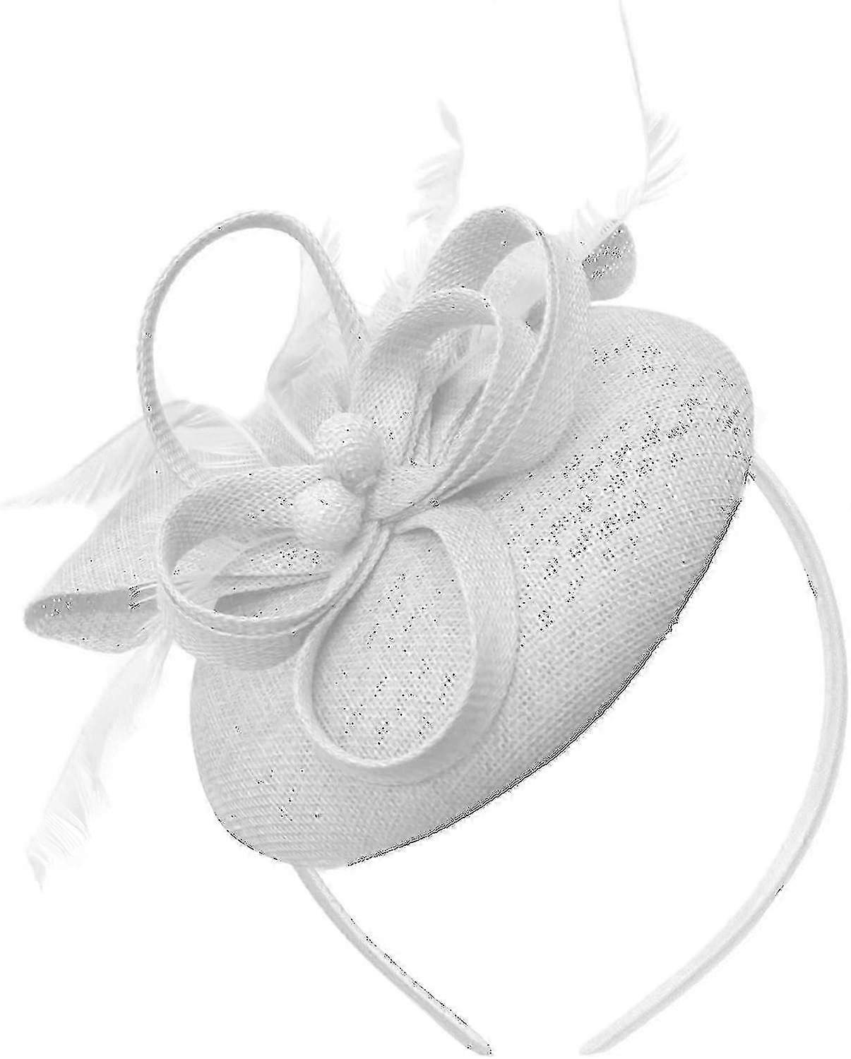 Bead Round Pillbox Loop Headband Fascinator For Women Wedding Ascot Races[dusty Pink] White