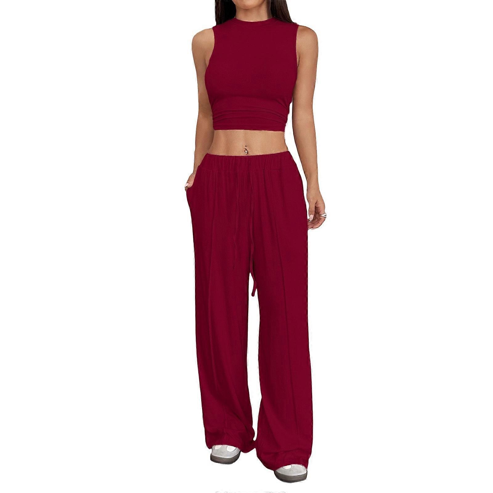 Women's two-piece casual sleeveless sportswear set Burgundy XL