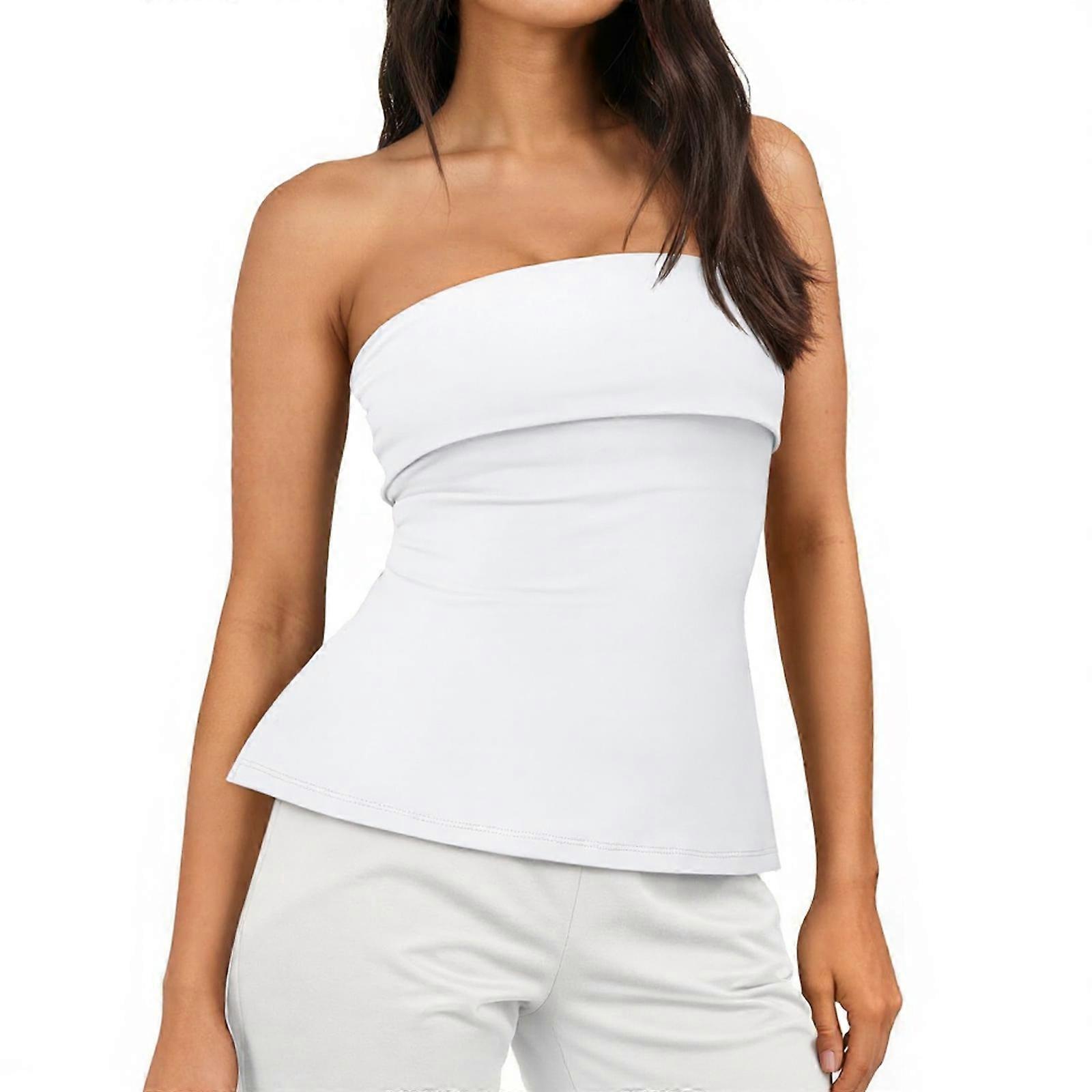(一件)Women's strapless off-shoulder backless cute work shirt/vacation top White XL