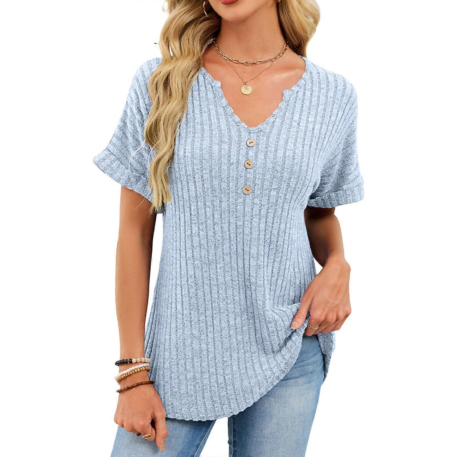 Women's short-sleeved V-neck top, lightweight casual shirt light blue XL