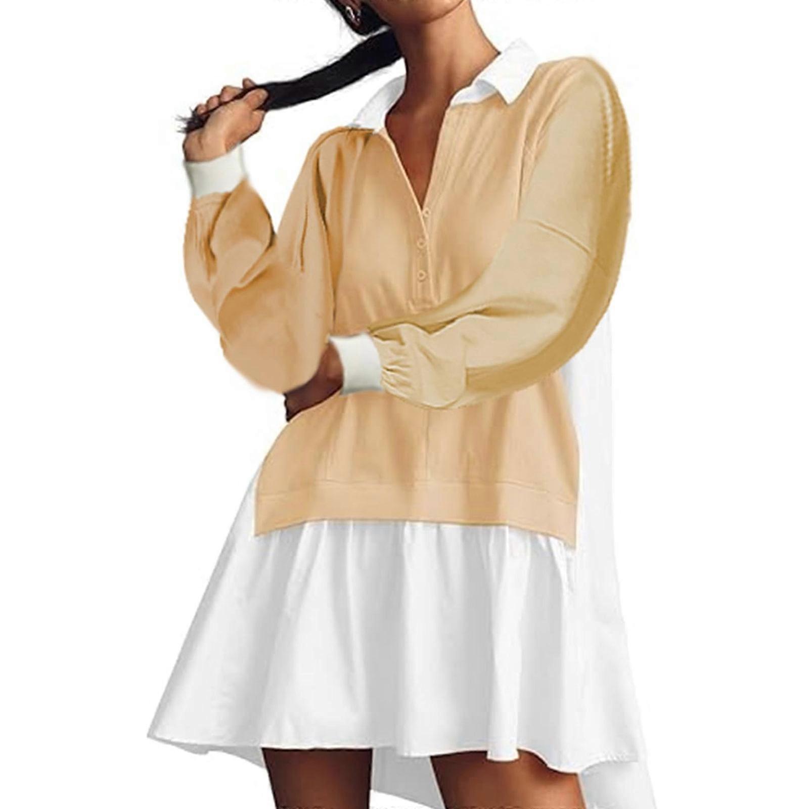 Women's Loose-fitting Long-sleeved V-neck Casual Pullover Yellow XL