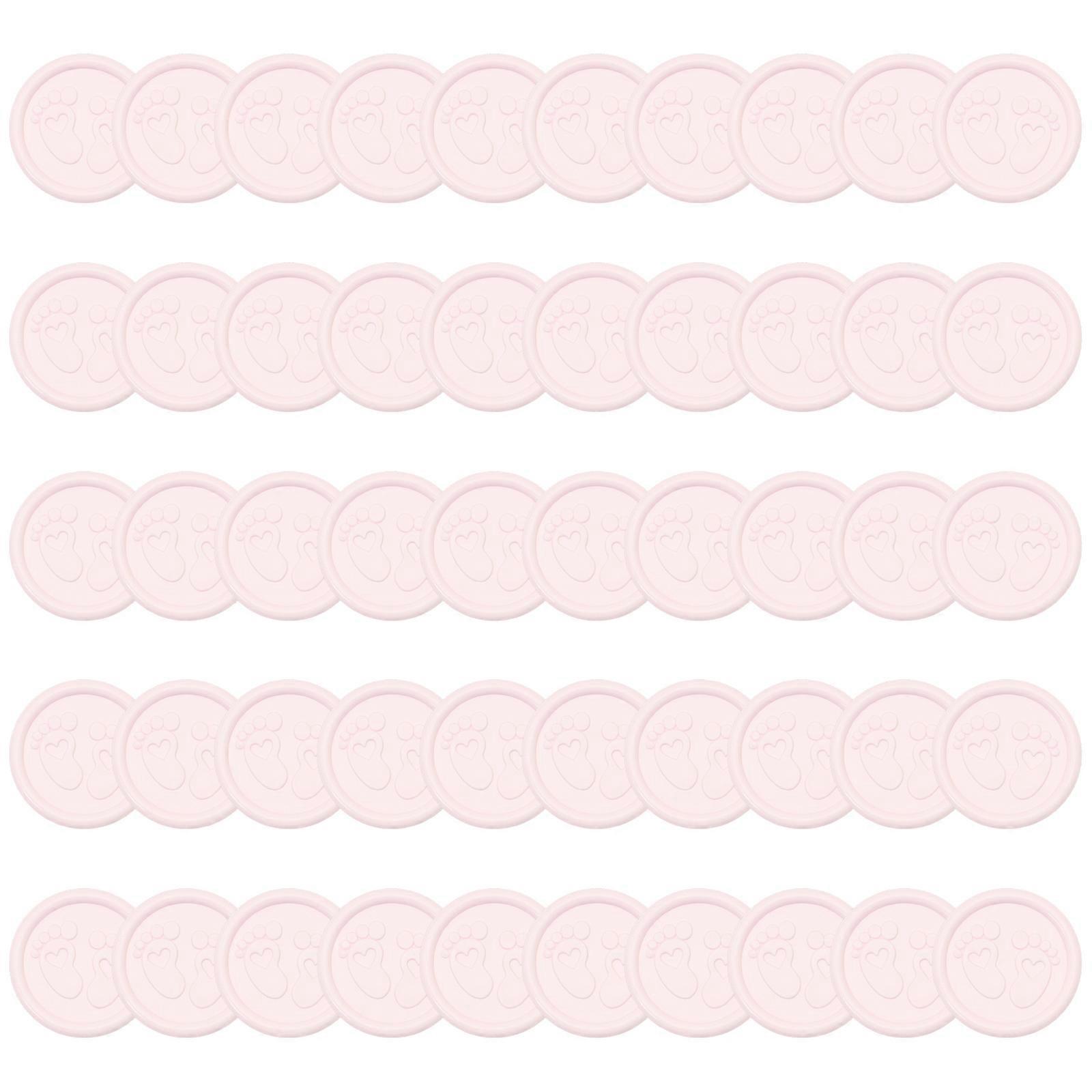 Pack of 50 Pearls Pink Adhesive Wax Seal with Baby Footprint for Quick Application on Invitations Card and Gift Sakuras powder