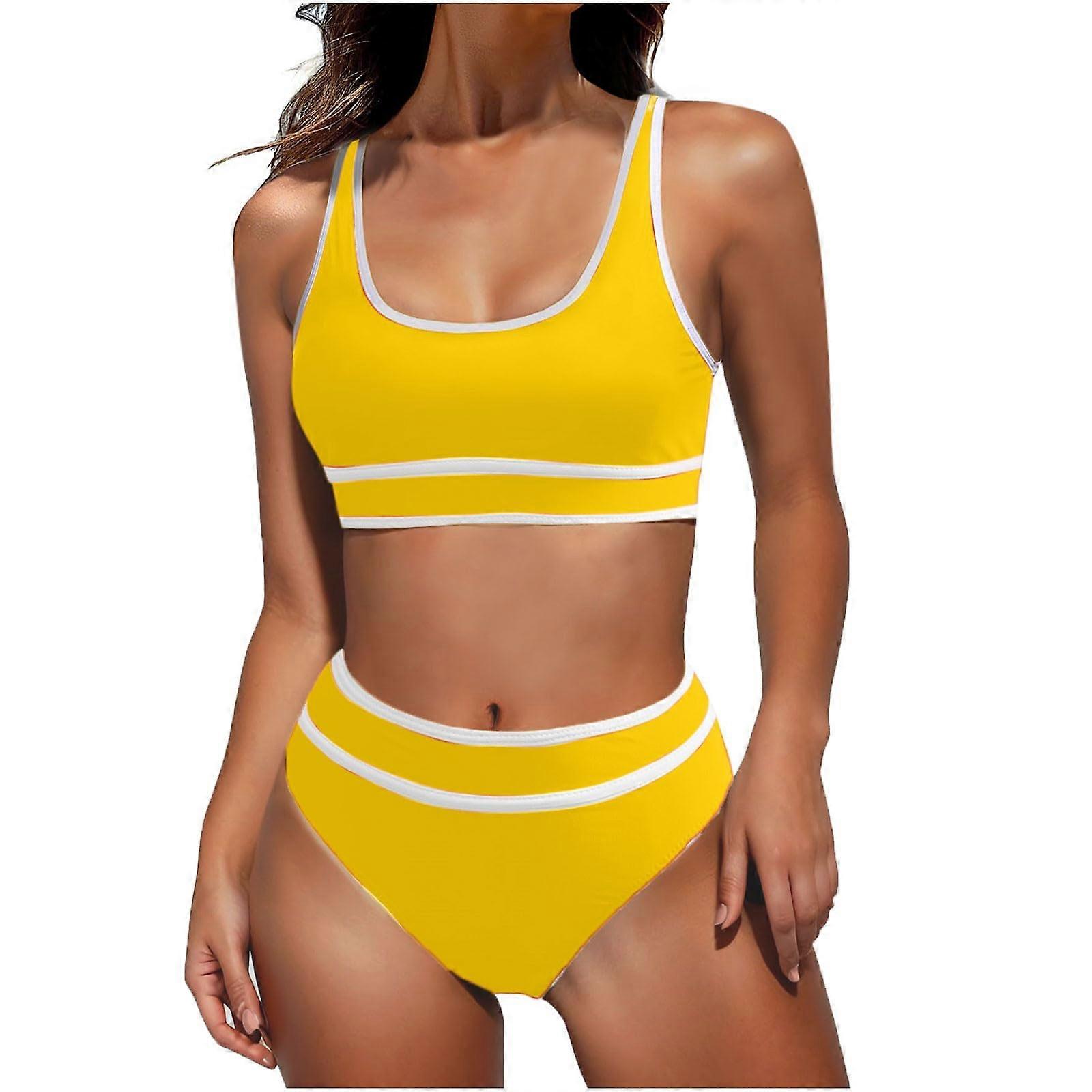 Women's High Waisted Bikini Sets Sporty Two Piece Swimsuits Color Block Cheeky High Cut Bathing Suits Yellow XL