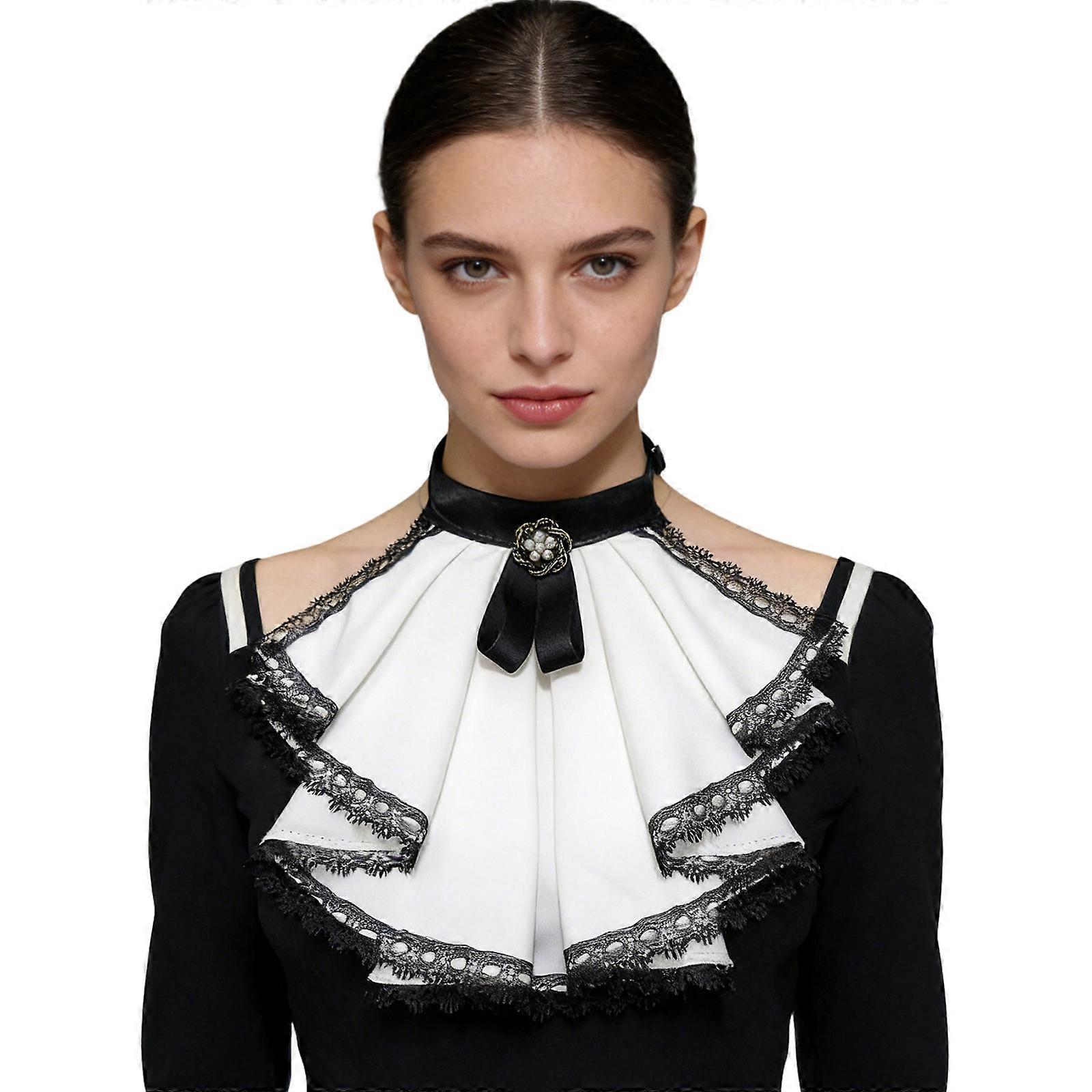 Elegant Lace Detachable Neck Collar For Women Comfortable Stretch Fabric False Collar Costumes Party Outfit Accessories White