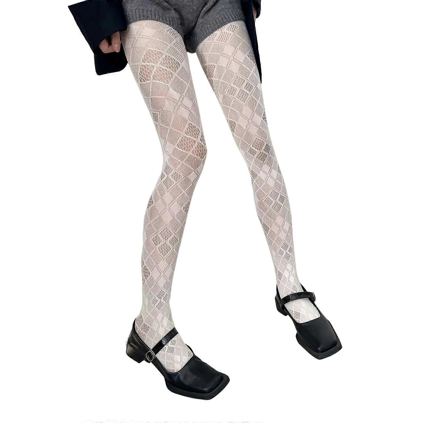 Women Patterned Tights Fishnet Stockings Pantyhose Patterned Net Stockings Pantyhose for Raves Party Club White os