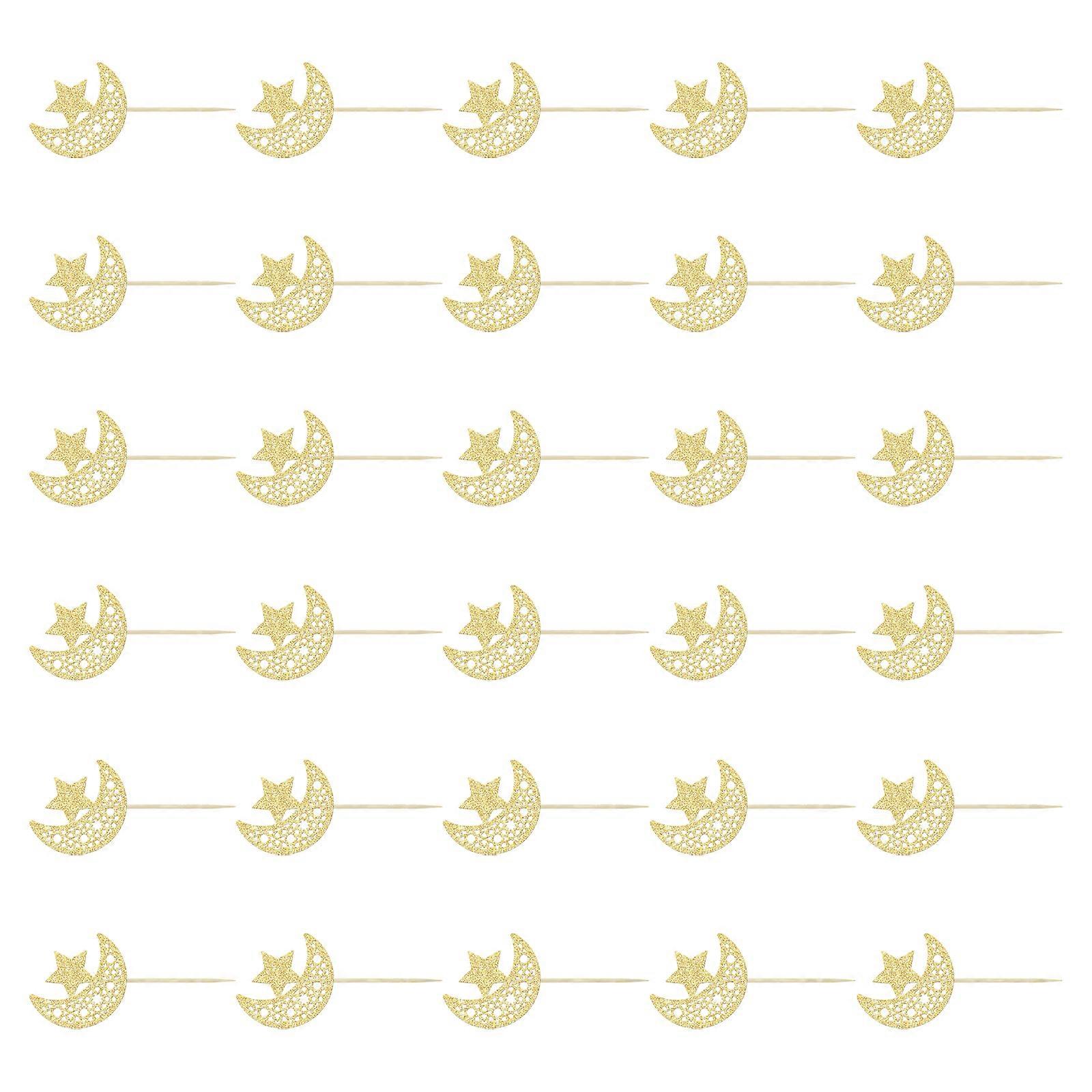 Pack Of 30 Festive Cake Decorations For Eid Moon And Star Motifs Cake Toppers Accessories Party Supplies Multicolor