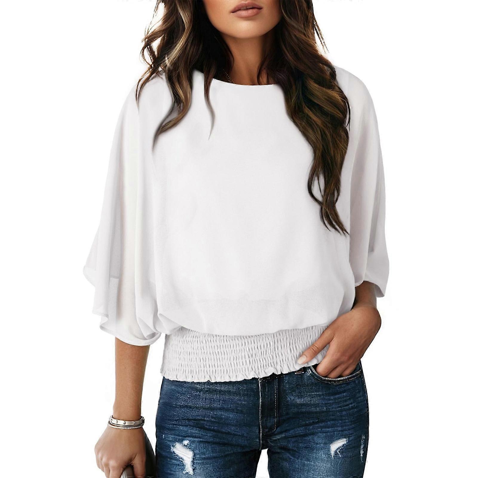 Womens Blouses Dressy Casual Boat Neck Flowy Chiffon Blouses Poncho Batwing Tops White XL