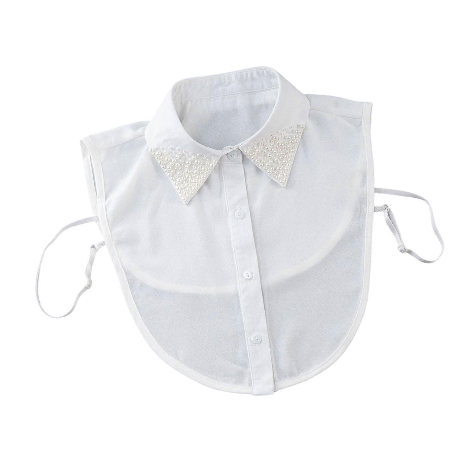 Jeweled Half Shirt False Collar Beaded Pearls Spread Lapel Graceful Art Collar Sweet Shawl False Decorative Shawl White