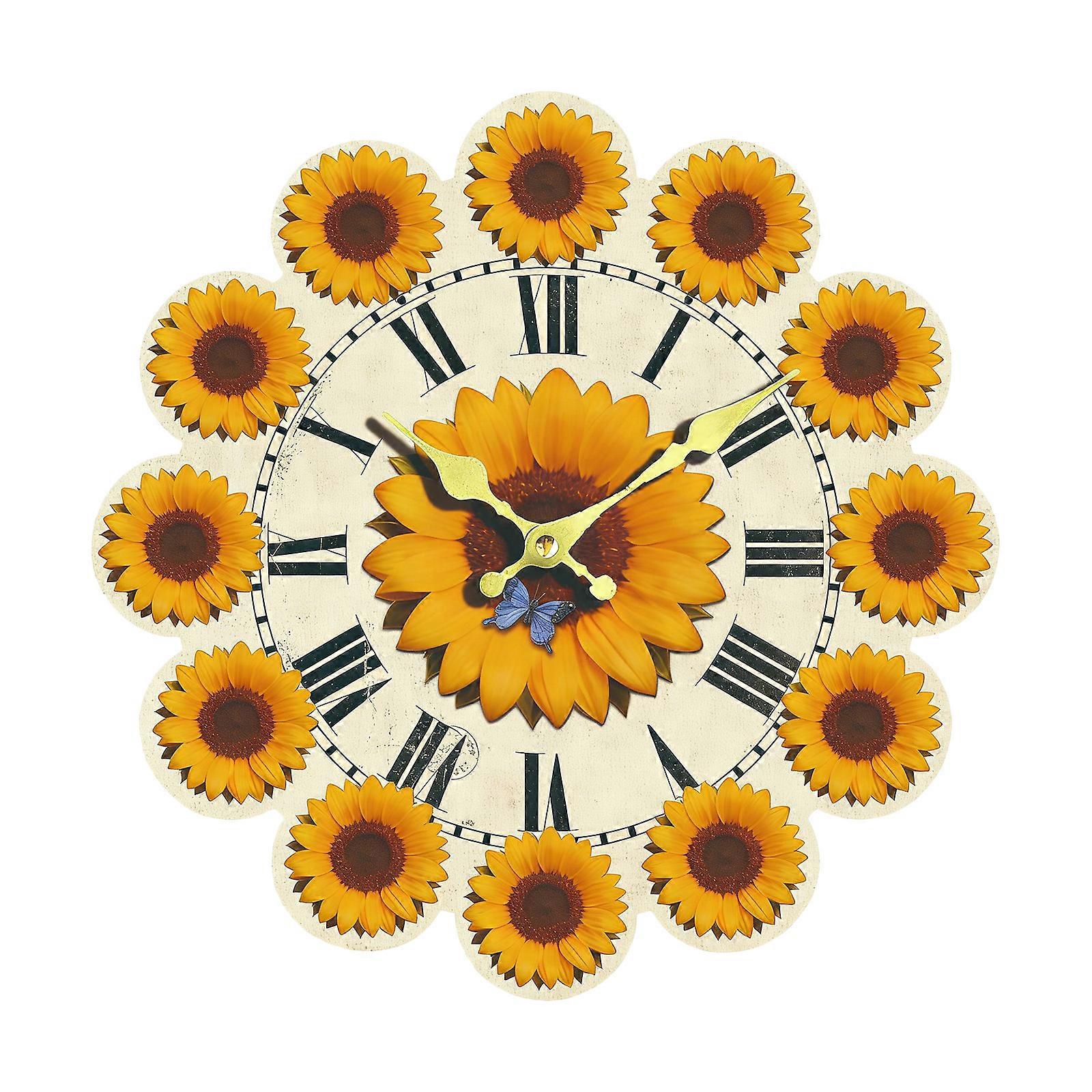 Wooden Frameless Sunflowers 2D Wall Clock Quiet Quartzs Movement Battery Operated for Living Room Bedroom Decors Gift Multicolor