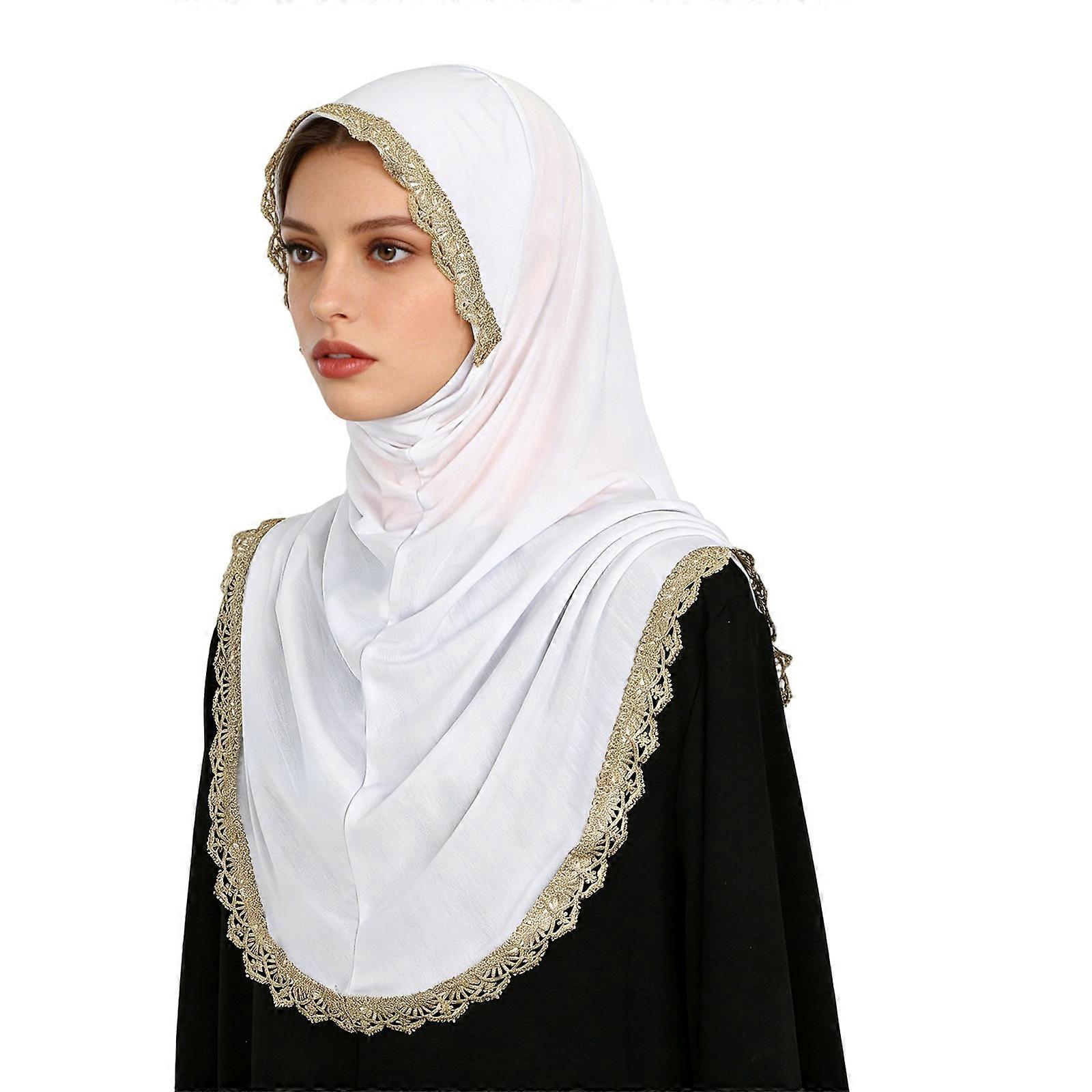 Features: This gold trimmed hijab shawl features lace embellishments for enhances durability and fray resistant edges, making it an all season versatile accessory perfect for everyday wear. Crafted from polyester with intricate gold edging accent, it offer superior abrasion resistance and comfort for year round use, ensuring long lasting quality. Designed for busy professional women and commuters, this headscarf provides a quick and stylish solution for hair management in fast paced routines. Ideal for office environments, public gatherings, or casual outings, it prevents snagging and adds elegance to any outfit while maintaining practicality. Blending traditional ethnic inspiration with modern fashion charm, this scarf delivers stable performances and cultural charm for diverse preferences. Specifications: Fabric: polyester Dimensions: 80x55cm/31.5x21.65inch Attribute: refer pictures to selection please Practicality: Suitable for commuting, year-round wear, cultural integration scenes, and quick hair styling for people in the workplace Package Includes: 1Pc Ethnic Headscarf Shawl note: Please allow 1-2cm errors due to manual measurement. Due to the differences between different monitors, the picture may not reflect the actual color of the item.