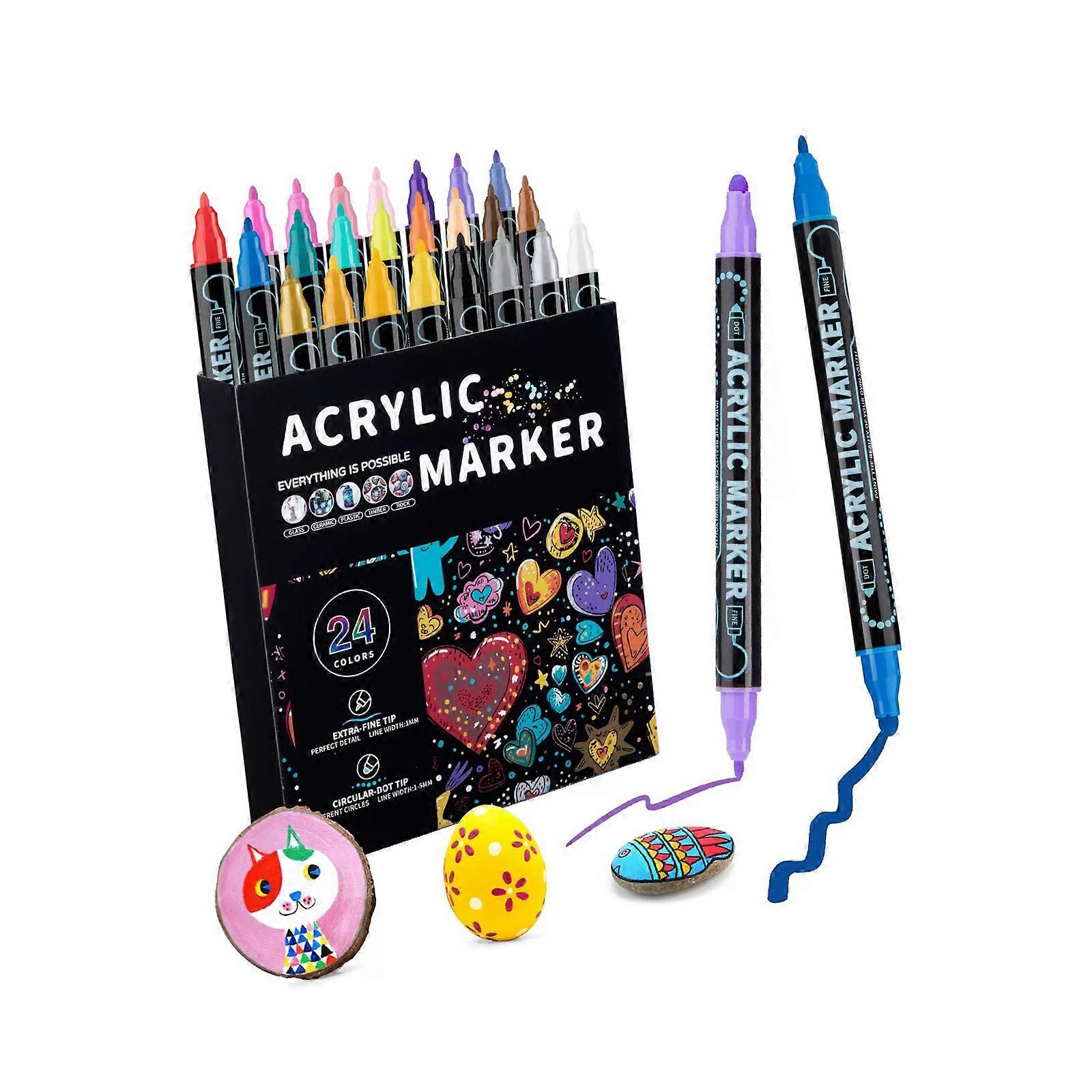 24Pcs Multicolor Acrylic Pens Double Head Design for DIY Art Projects on Fabric Wood Glass Ceramic Stone Waterproof Multicolor