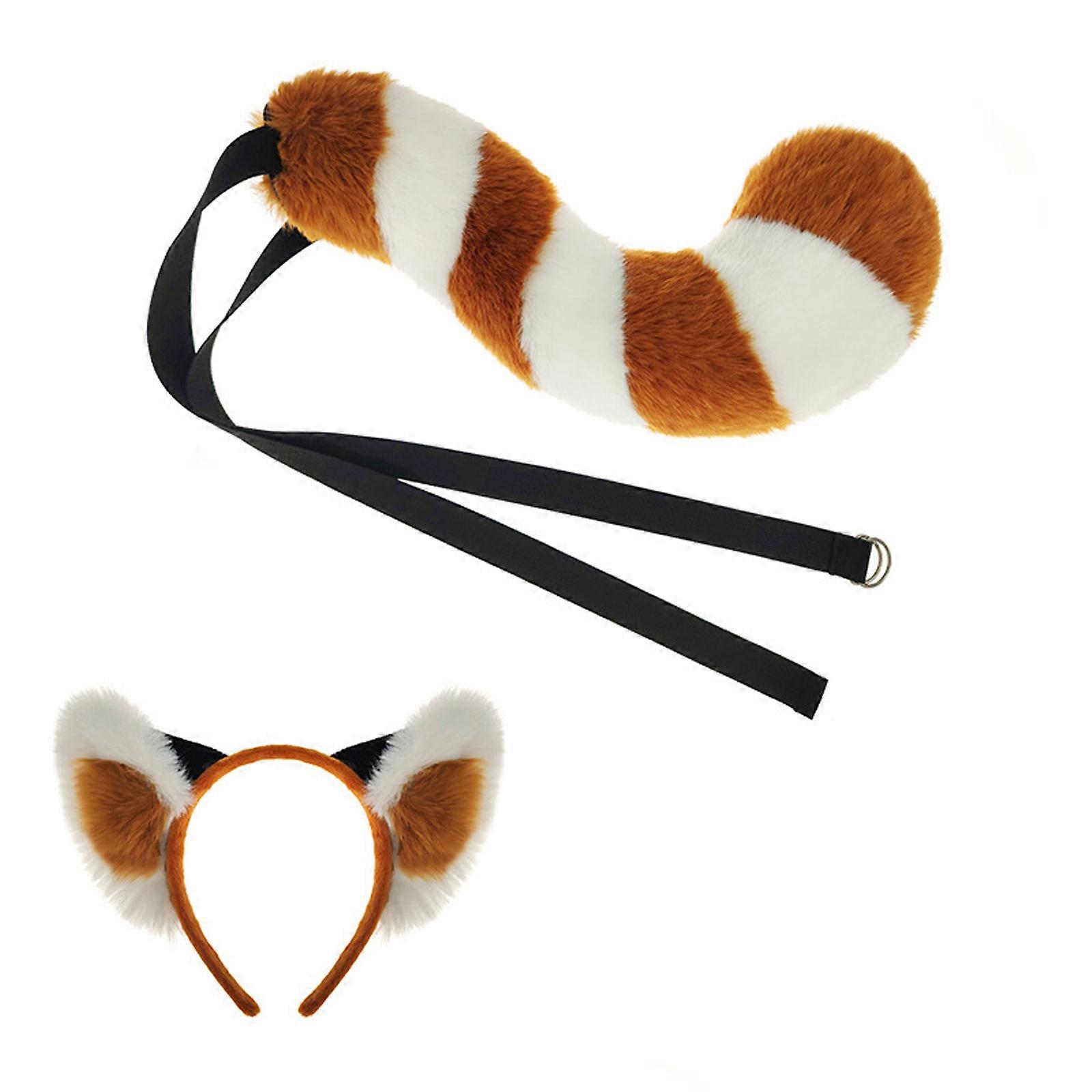 1/2Pcs Faux Furs Animal Tail Panda Ears Headband Halloween Cosplay Costume Panda Ears Hairband Panda Tail Panda Costume Multicolor