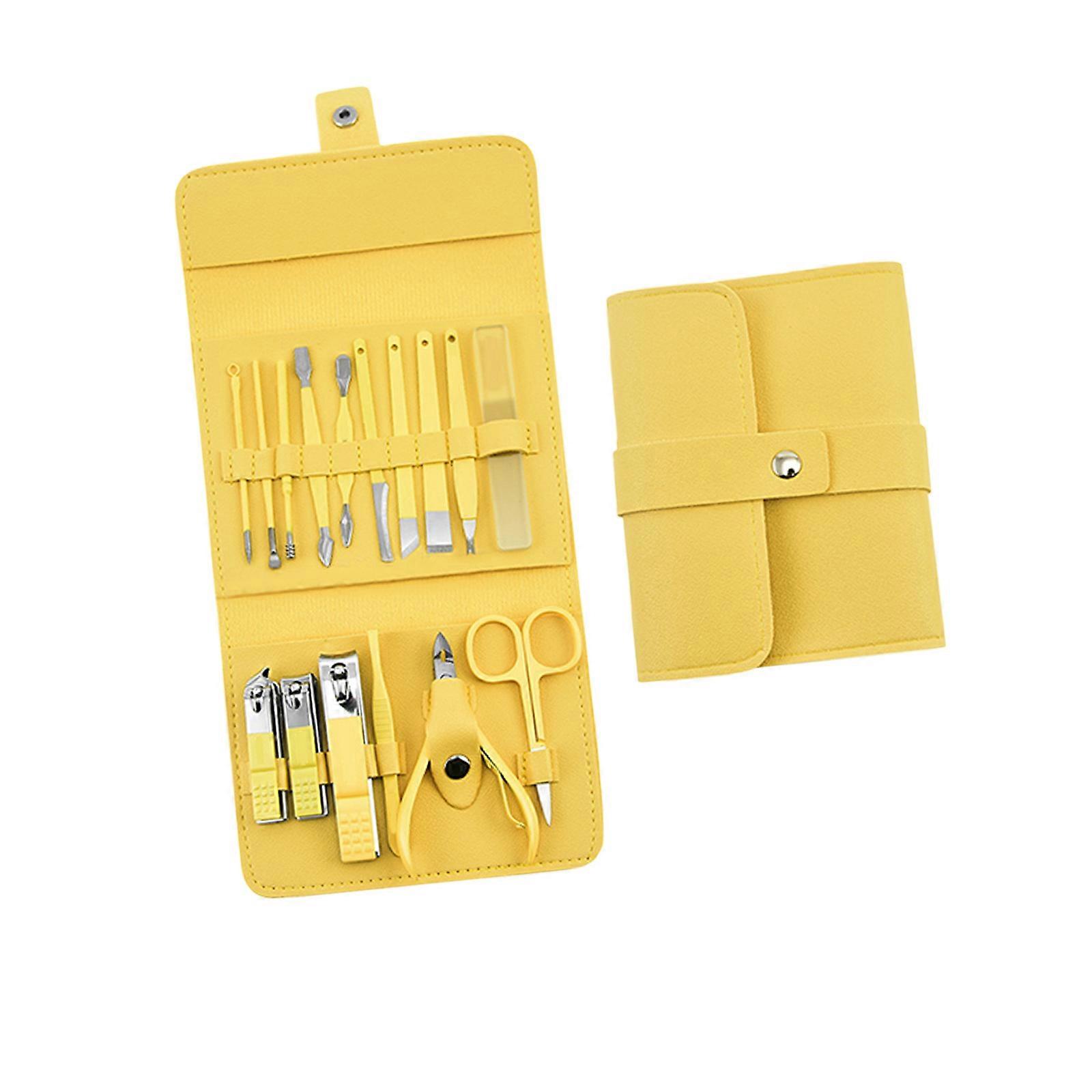 Stainless Steel Nail Clippers Set AntiSlip Handle Sharply Blades Folding Case for Personal Grooming Needs Yellow