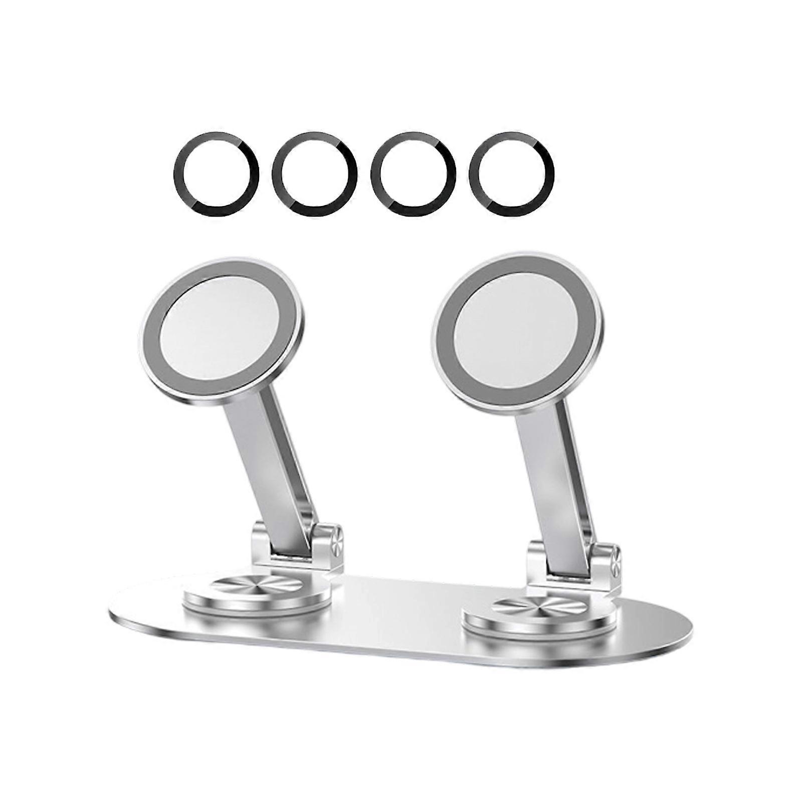 360 Degree Rotatable Phone Stand For Double Smartphones 4-7 Inch Magnetic Attachment Adjustable Height Foldable Desktop Stand Nonslip Base For Stable