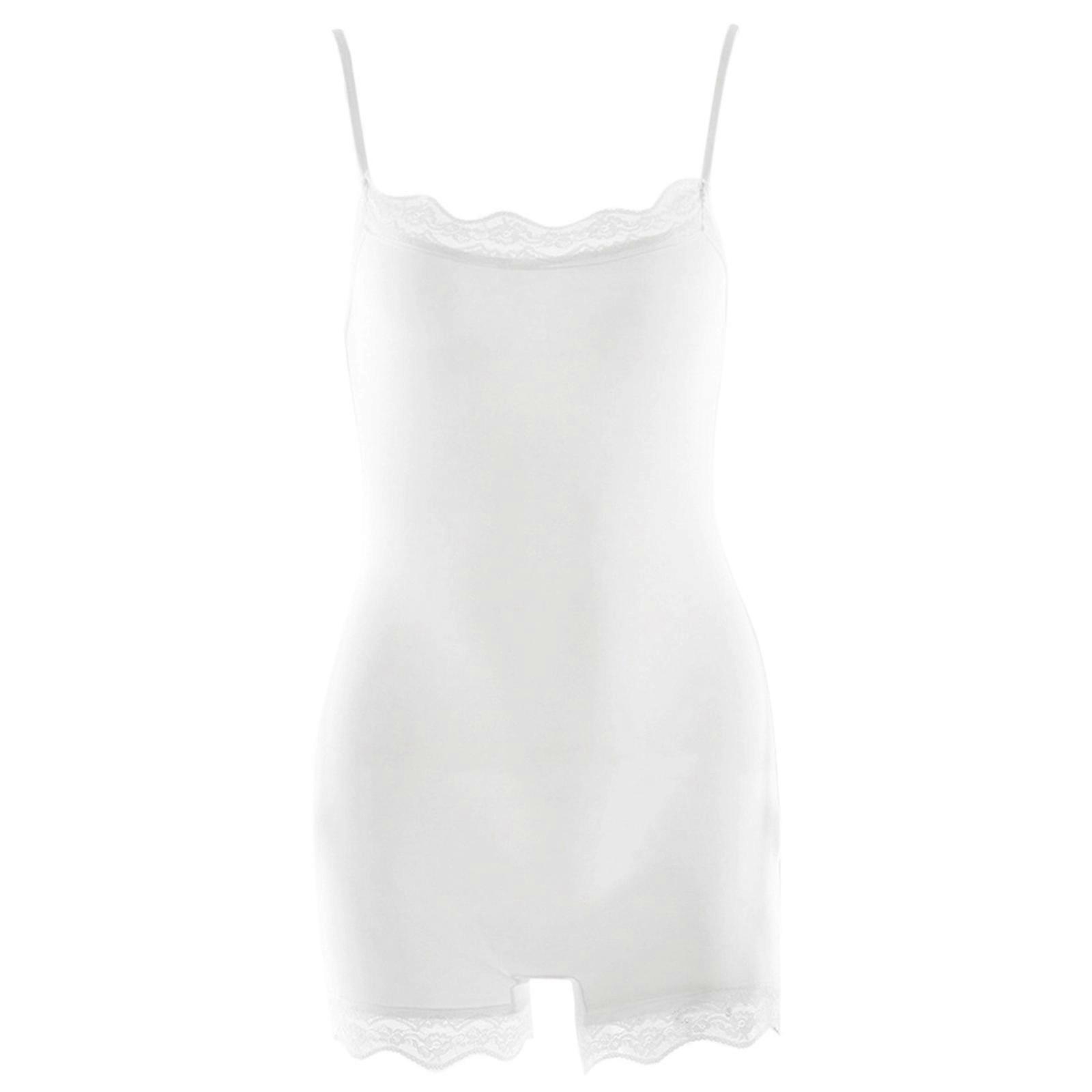 Women Lace Trim Spaghetti Strap Camisole Jumpsuit Sleeveless Bodycon Shorts Romper Bodysuit Solid Color Shapewear White S