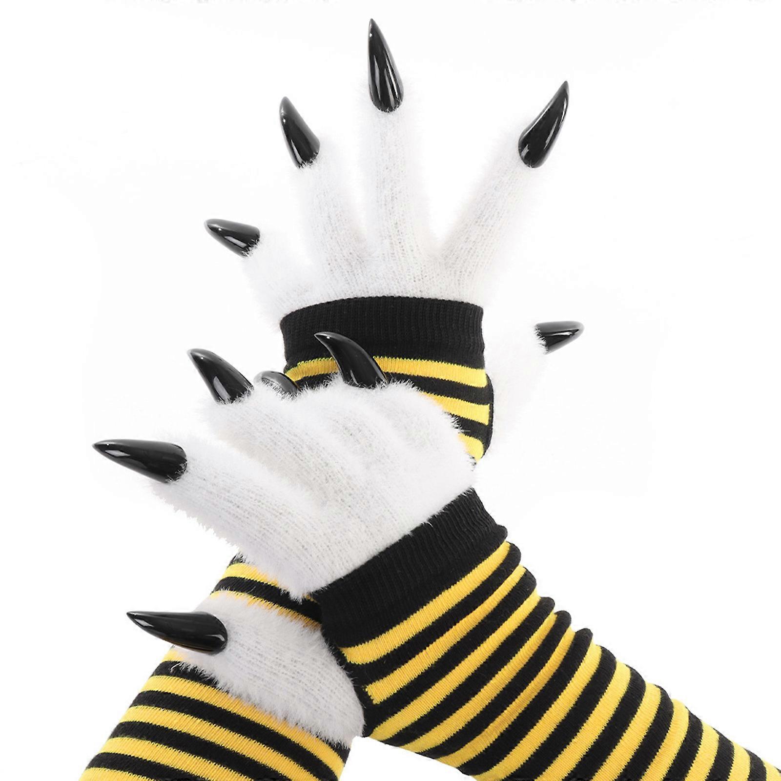 Faux Furs Cats Claw Gloves Therians Paws Plush Fursuit Paws Halloween Cosplay Costume Animal Foxes Paws Mitten Women Men yellow white