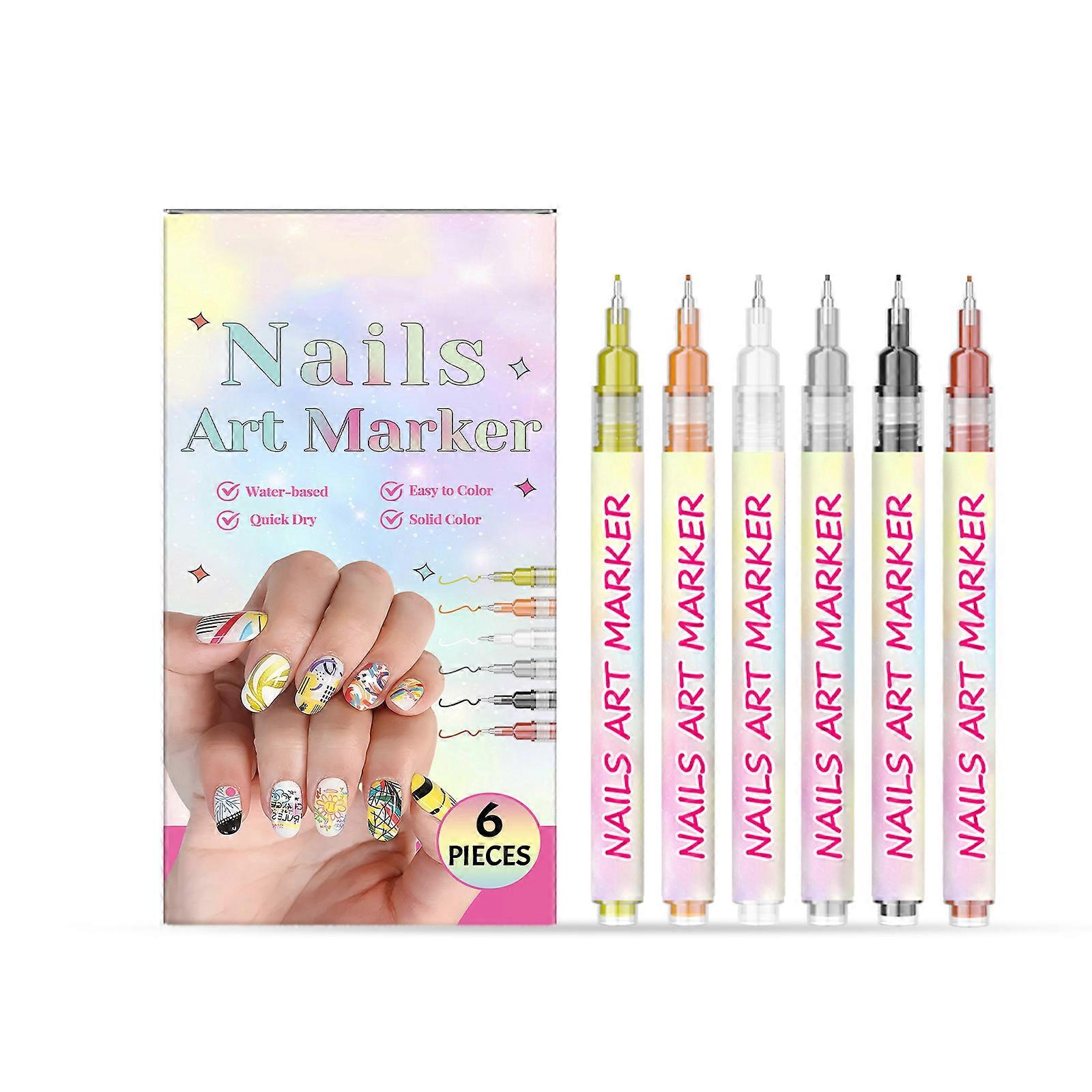 6Color Nail Art Pen DIY Nail Art Painting Pen Fine Tip Markers for Intricate Pattern Easy to Use for Professional Multicolor