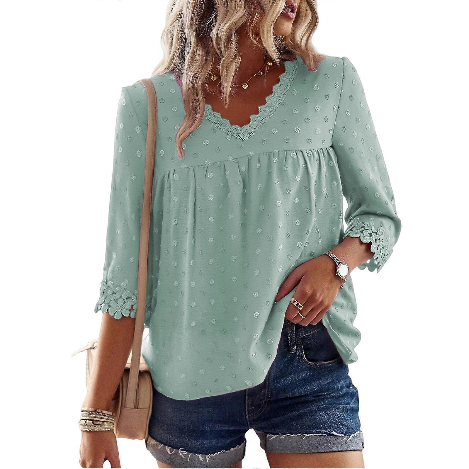 Tops for Women Three-quarter Sleeves Shirts Vneck Flowy Womens Blouses Casual LaceClothing Trendy mint green XL