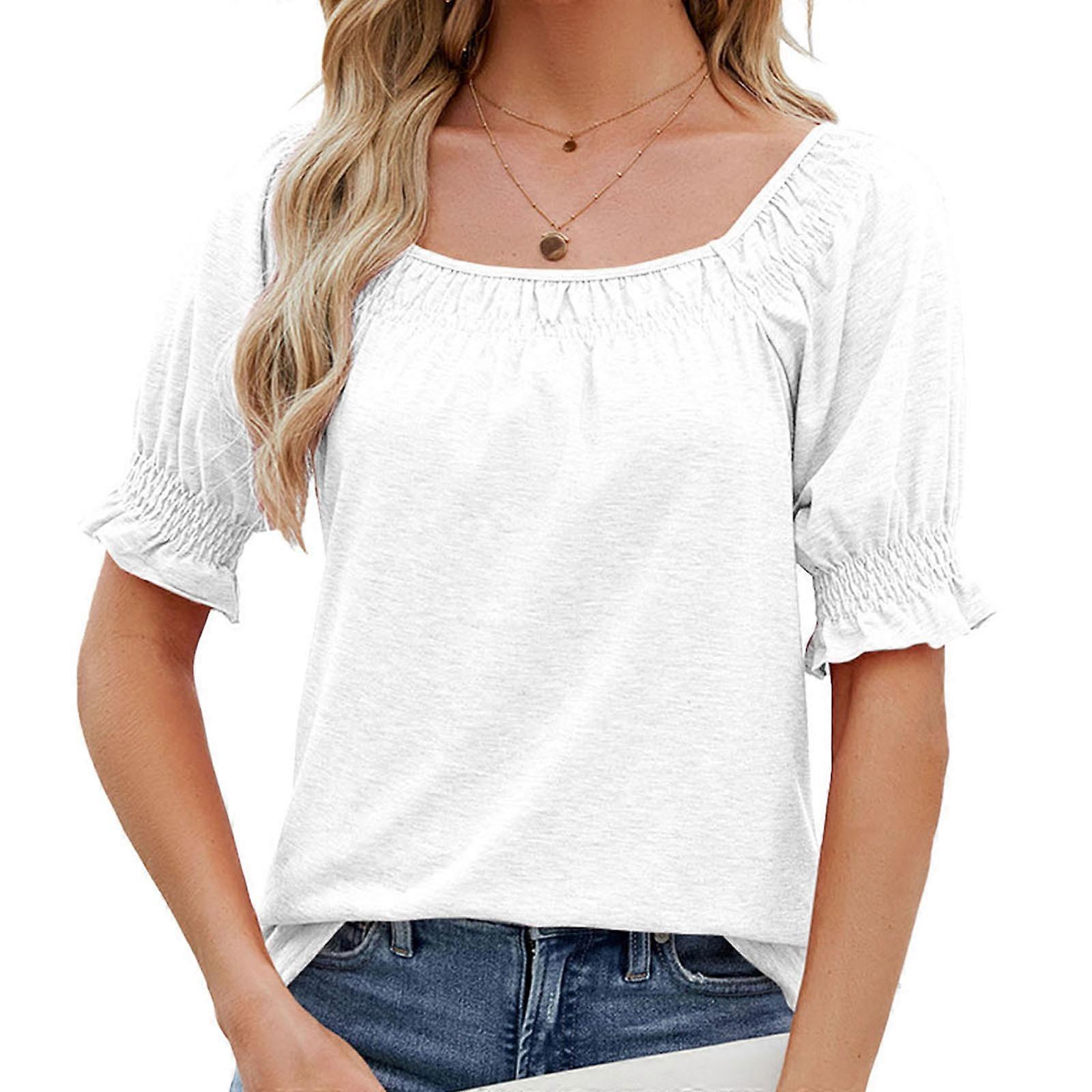 Camisetas mujer, informal, con volantes, cuello cuadrado White XL