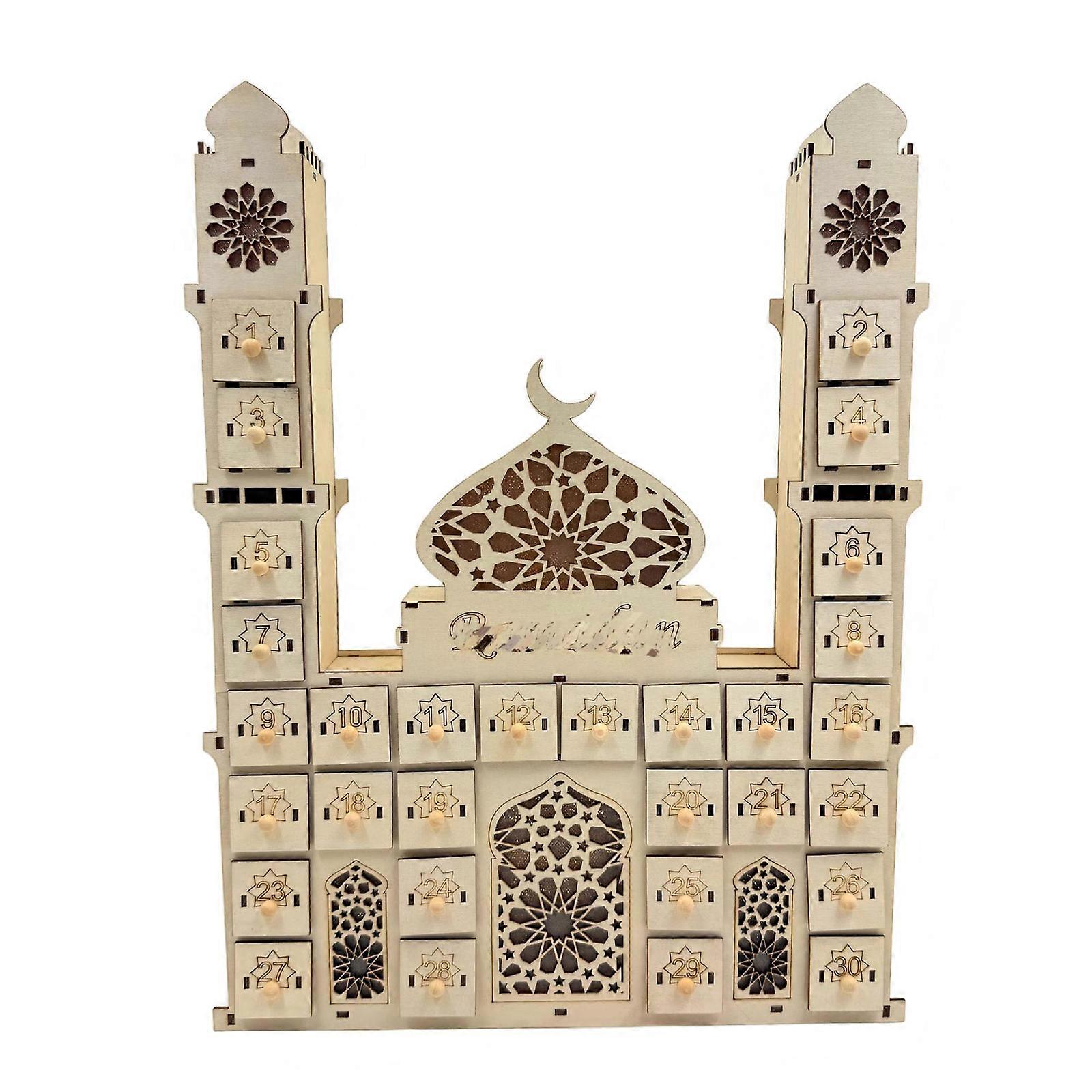 30 Drawer LED Lighted Eid Wood Mosque Castles Ramadans Advent Calendar for Islamics Festivals Party Home Decorations Multicolor