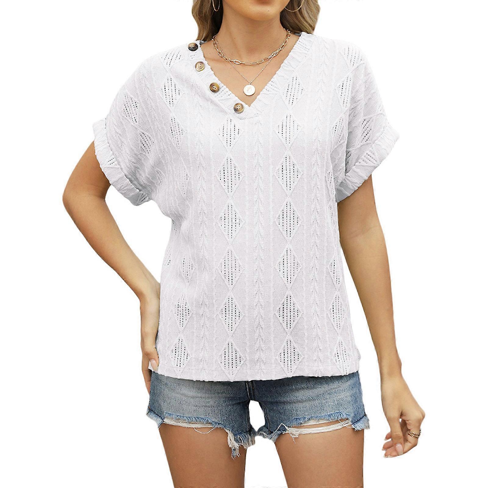 Women's Tops, Tops with V-Neck, Short Sleeve, Button-Down, Elegant Buttonhole Blouses White XL