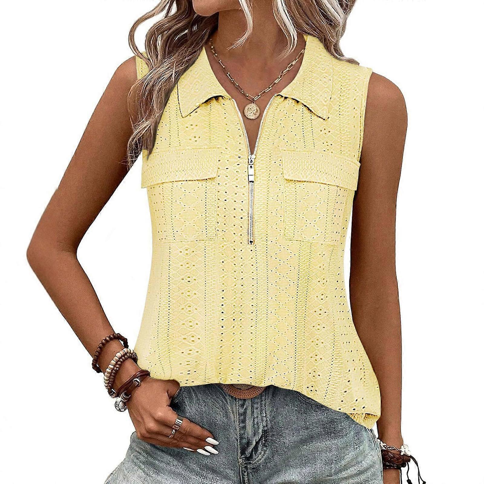Women's Zipper V-Neck Sleeveless Tops Business Casual Work Tunic Tank Tops Dressy Blouse Shirt Yellow XL