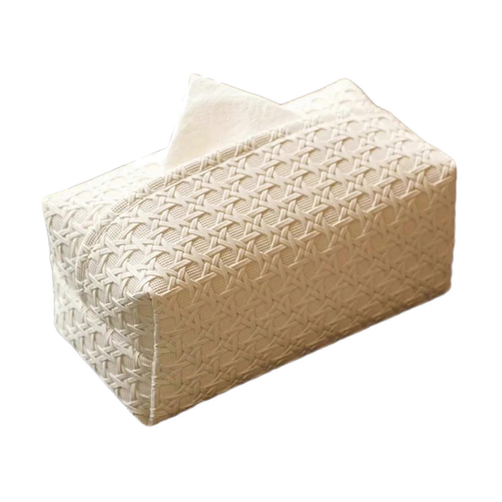 Modern Rattan Weave PU Leather Tissue Box Cover Waterproof High Capacity Suitable for Multiple Locations Simple Wipe Cleaning White