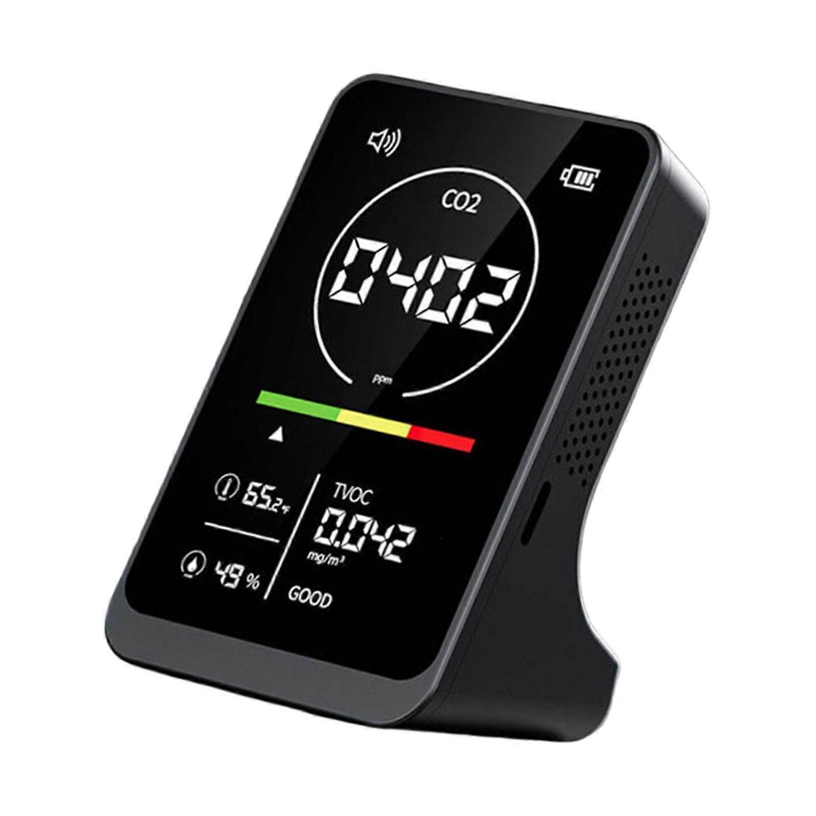 Features: Experience comprehensive air monitoring with the air quality monitor, simultaneously detecting CO2, TVOC, temperature, and humidity for holistic indoor assessment using high precise sensors. Featuring CO2 accuracy down to 10PPM, real time TVOC alerts, and two power option with built in battery and Type C charging, this portable gas analysis ensures reliably data for environmental tracking. Ideal for households, especially families with infants, or allergy sufferers, this air quality detector helps manage health by identifying invisible pollutants like TVOC and CO2. Designed for versatile use, it seamlessly monitors air in homes, offices, classrooms, and vehicles with its compact 117x73x60mm dimensions and lightweight 165g build for easy mobility. With intelligent alarm functions that notify when CO2 or TVOC levels exceeding safe thresholds and ABS construction, it provides accurate and dependable performances for continuous environmental monitoring. Specifications: Component: ABS engineering plastic Measurement accuracy:10PPM Measurement ranging:400-5000PPM Type C power supply Size:Approx.117x73x60mm/4.6x2.87x2.36inch Color:black Package Includes: 1pcs Air Quality Monitor note: 1.Please allow 1-2cm errors due to manual measurement, make sure that you donot mind befores you order. 2.Due to the differences between different monitors, the picture may not reflect the actual color. Thanks for your understandings.