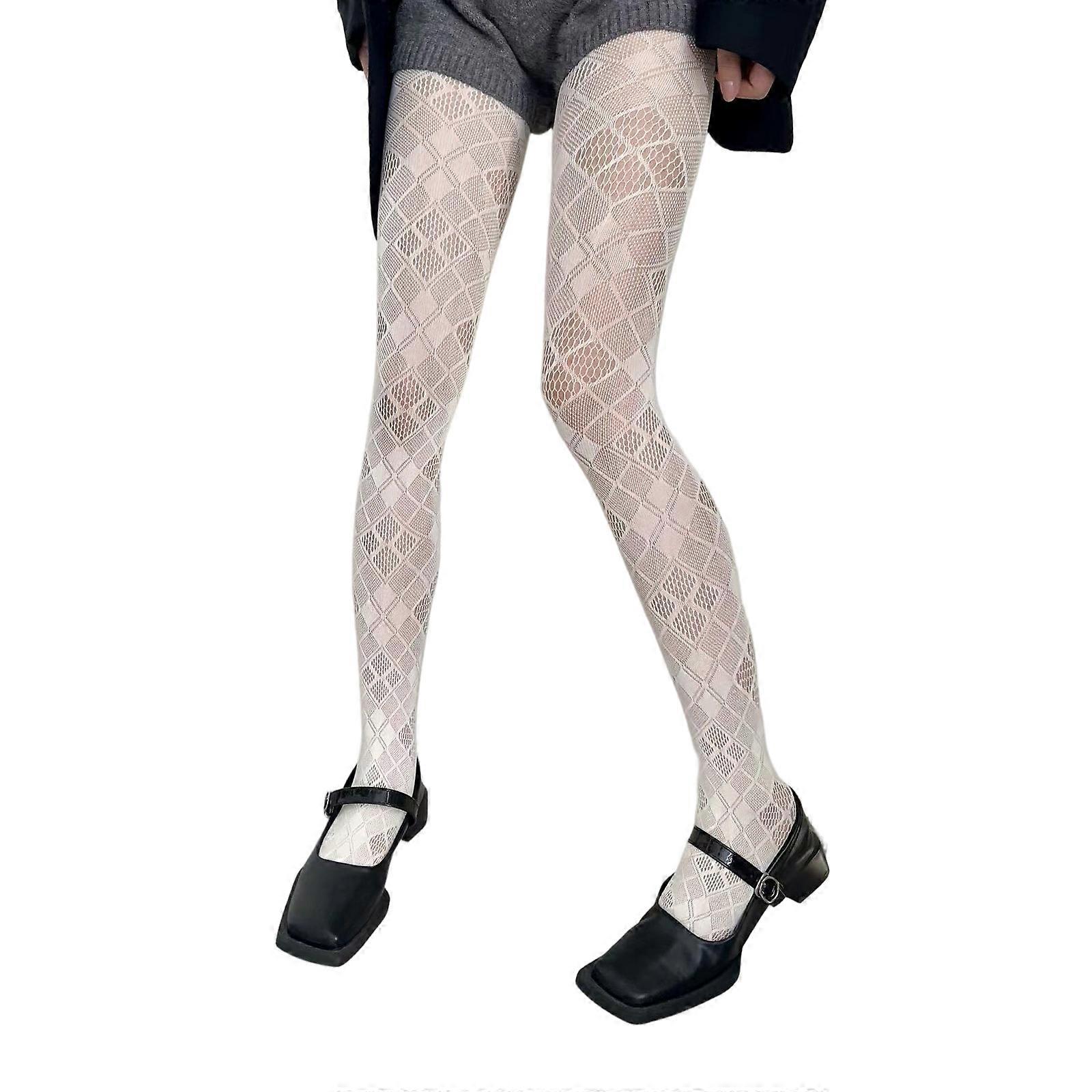 Women Patterned Fishnet Tights High Waist Fishnets Leggings Net Stockings Pantyhose Thigh High Stockings Hosiery White os