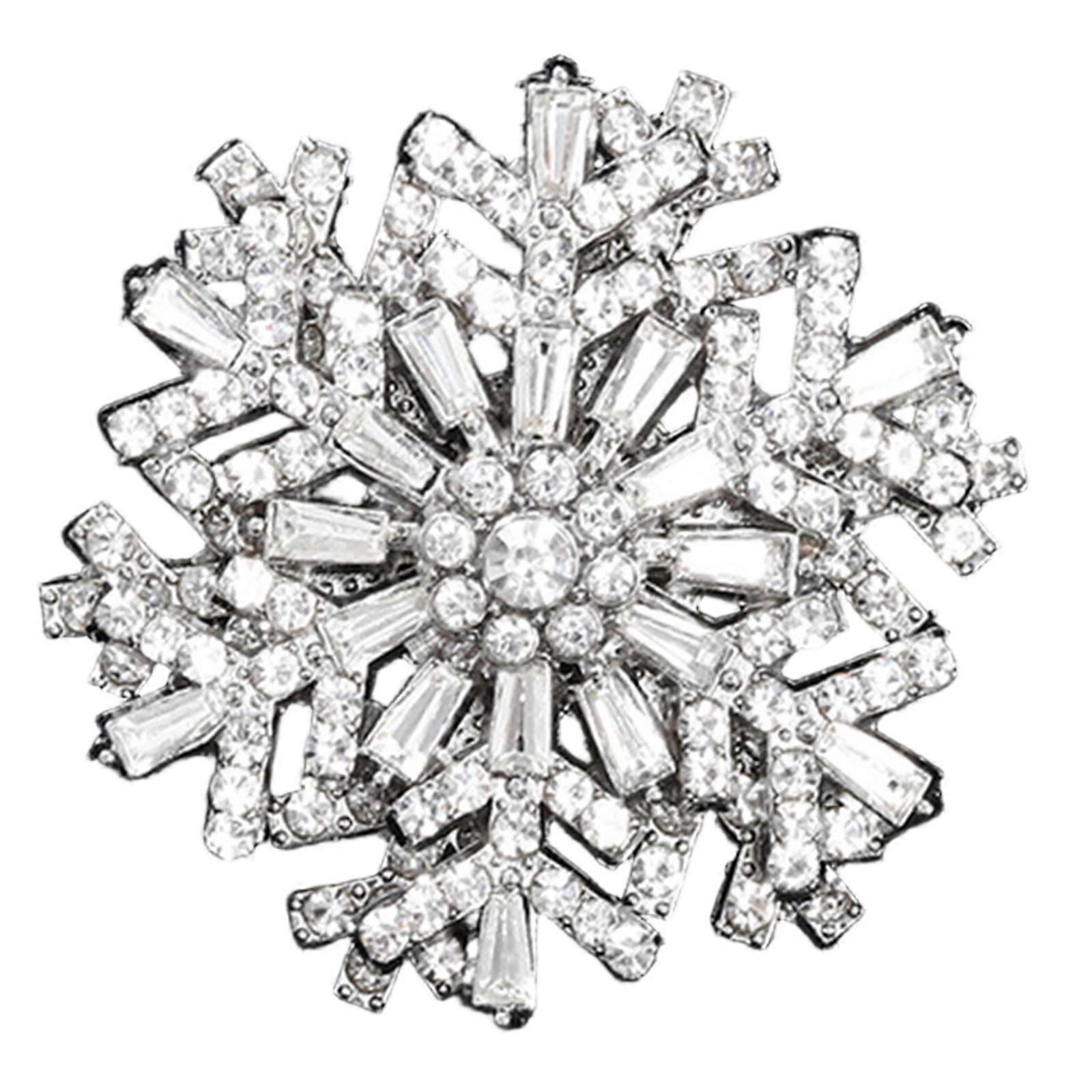 Elegant 3D Rotating Snowflake Brooch For Formal Event And Holiday Parties Crafted From Sturdy Alloy Material White