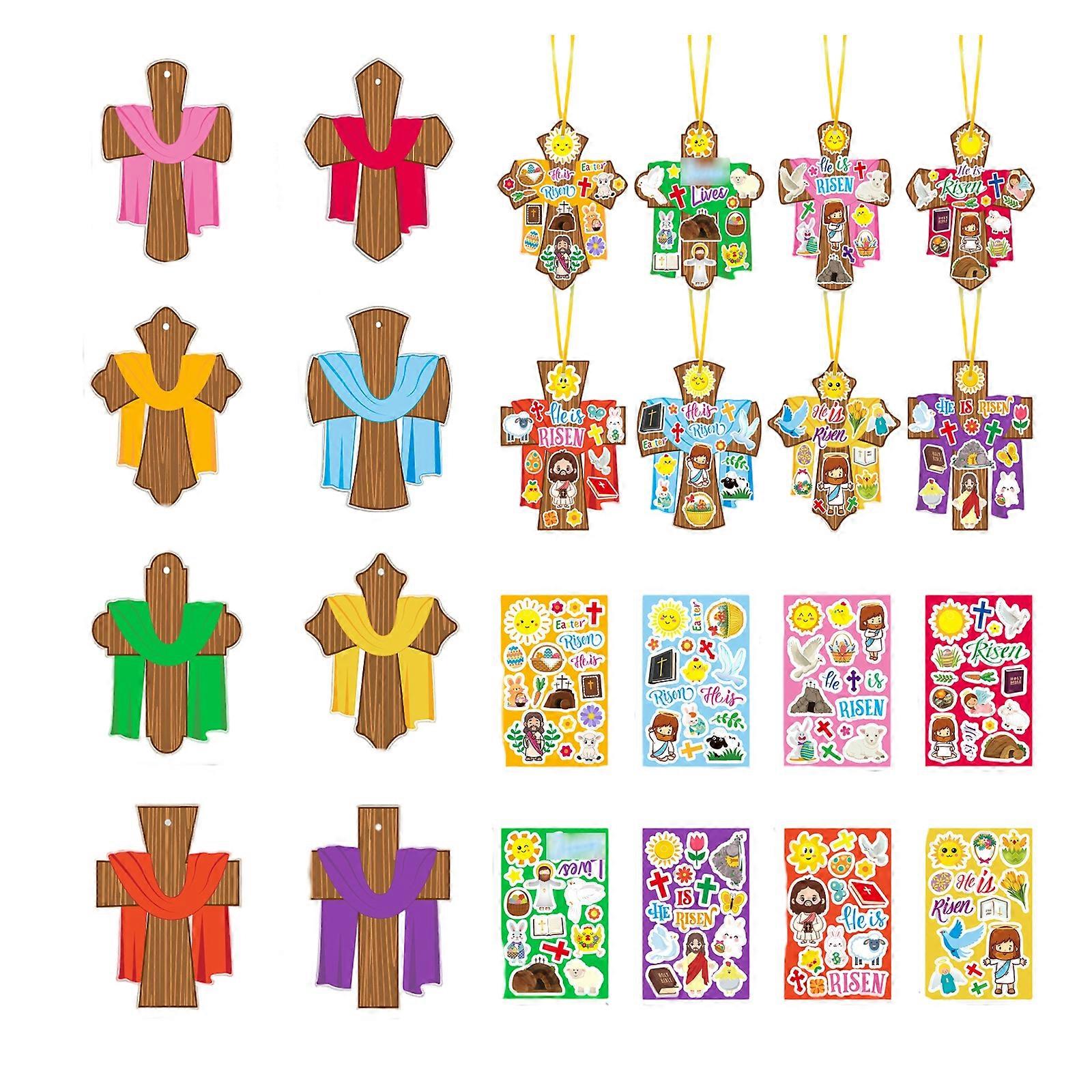 Crossed Paper Pendant and Easter Themed Sticker Set with Hanging Ribbon For Festival Celebration and Gifts Packaging Multicolor