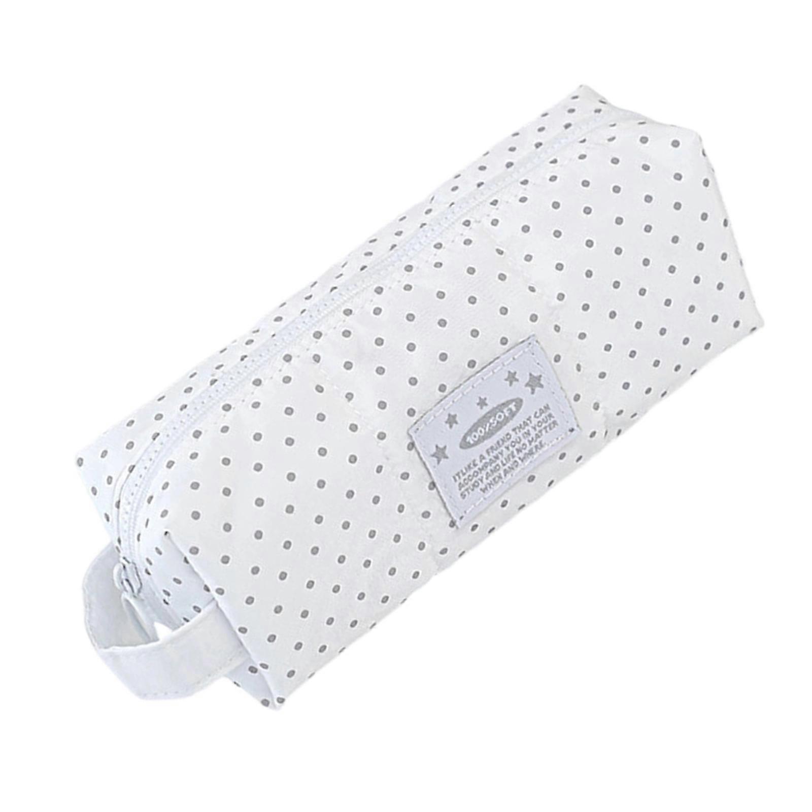 Dotted Print Pencil Case High Capacity Fabric Pencil Bag Zippered Portable Pen Organiser Storage Bag for Student Girl White