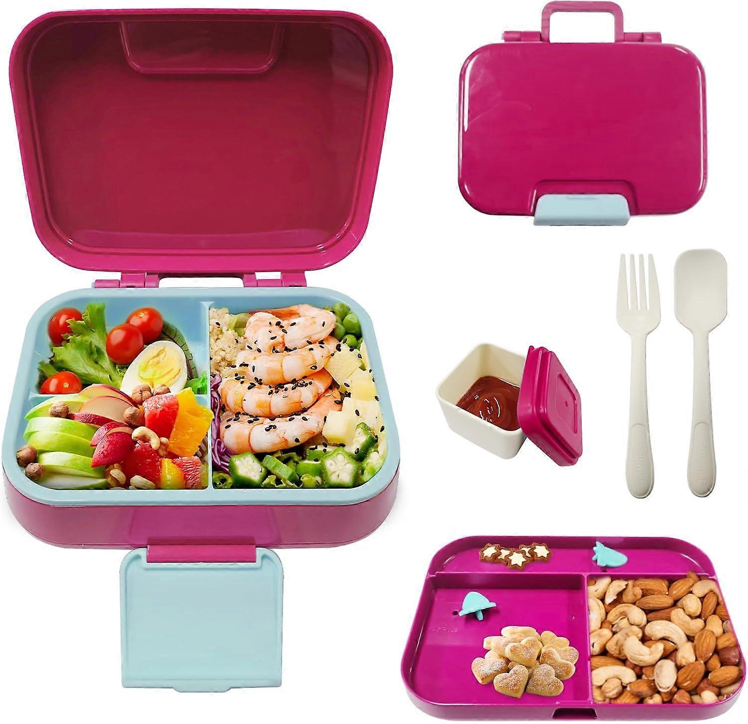 Reusable Double Layer 3 Compartment Bento Lunch Boxes for School Work Travel Pink