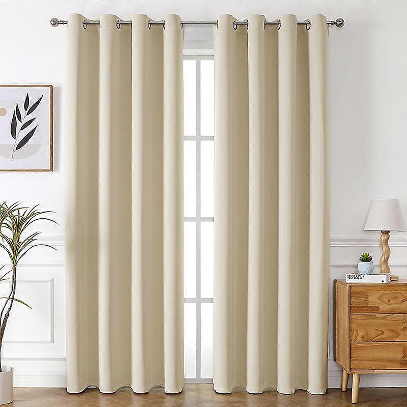 Blackout curtains with eyelets for bedroom, thermal insulating anti-heat curtain, interior yellow beige