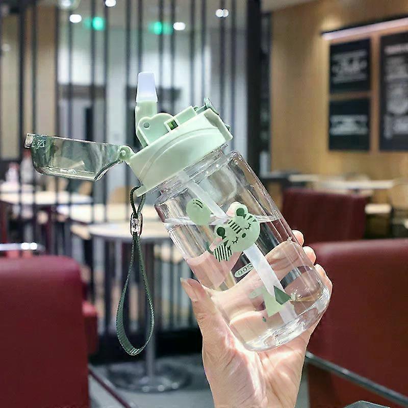 Water Cup with Strap for Boy and Girl, Baby Water Bottle, Cute Cartoon Animal Green Cat 550ML