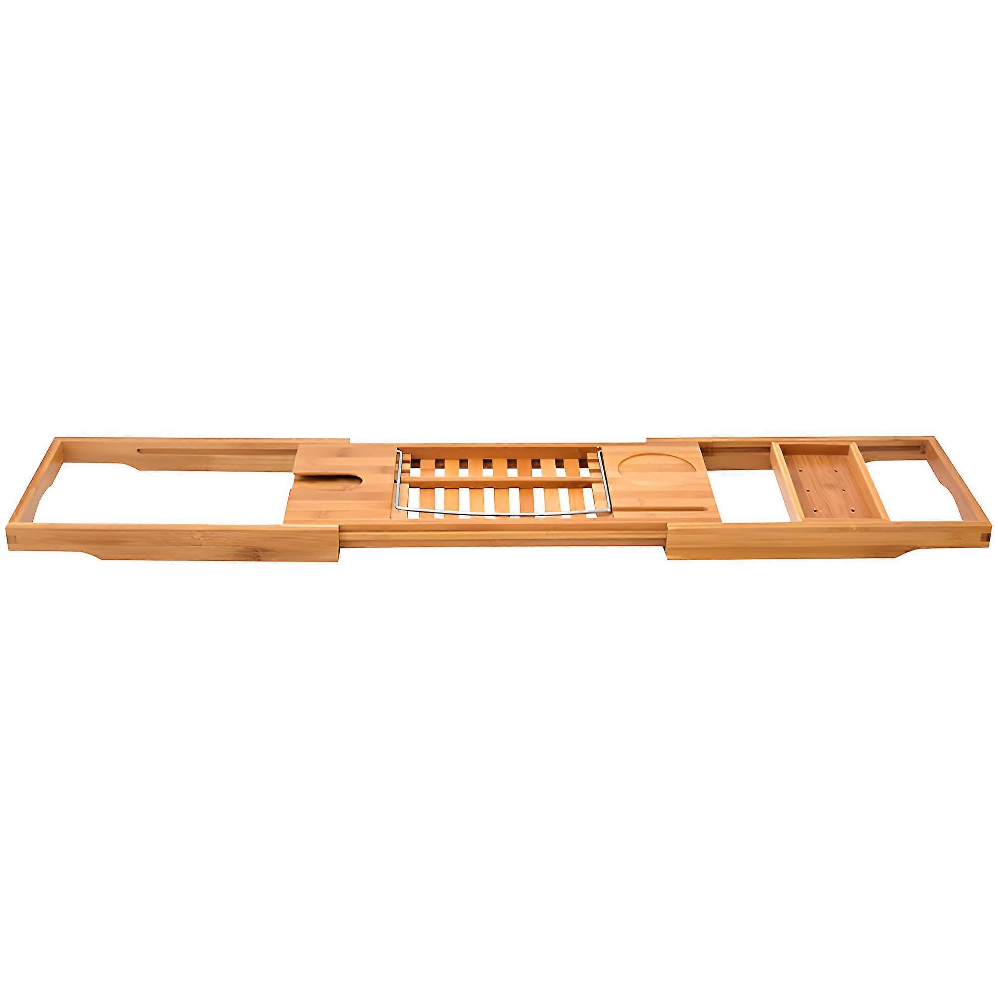 Expandable Bathtub Shelf Featuring Holder Candle Stand Phone Mount And Storage Area Crafted From Teaks Wood Multicolor