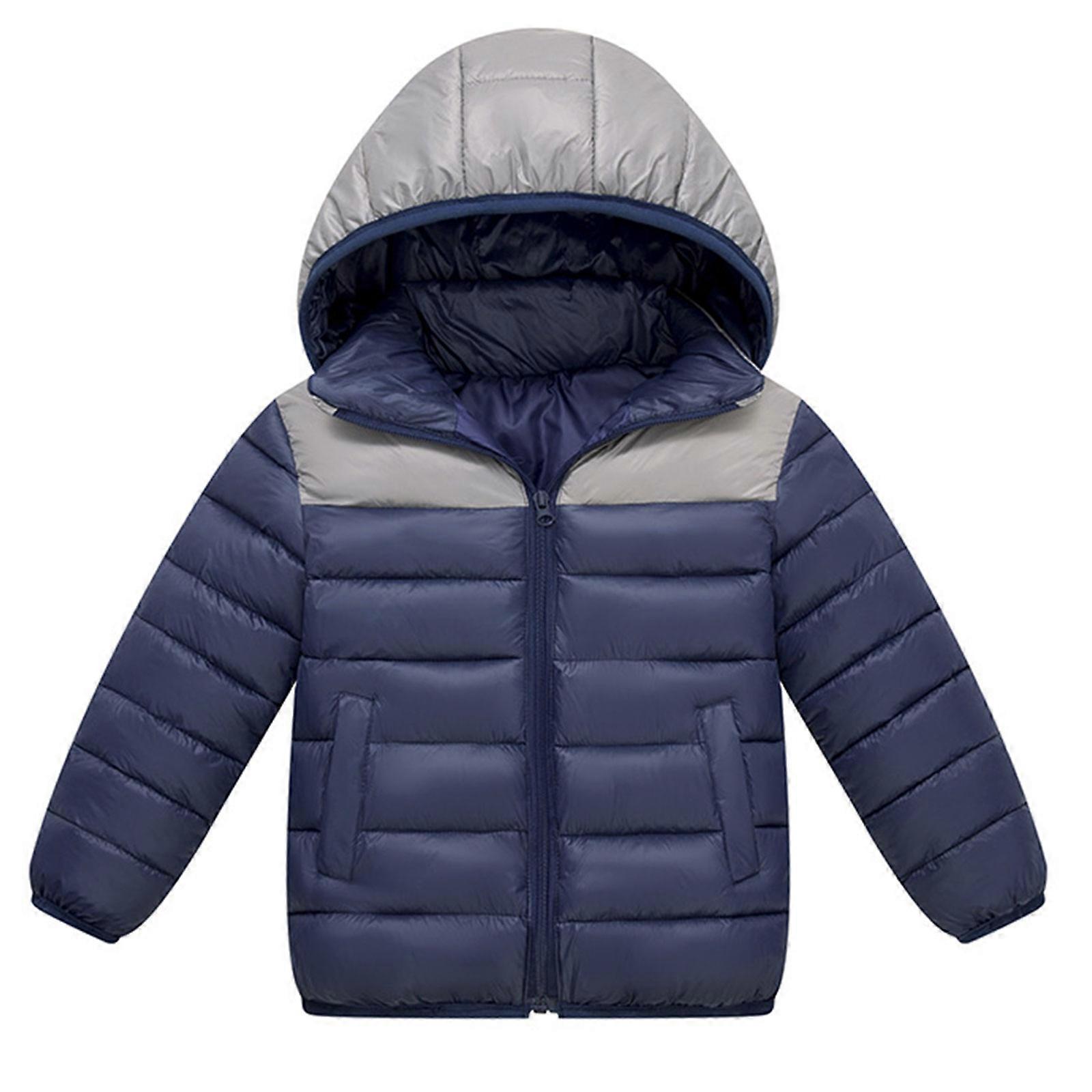 Stylish Simple Patchwork Childrens Padded Coat Warm Cozy Comfortable For Cold Weather Fashionable for Outdoor Activity Navy blue 160cm
