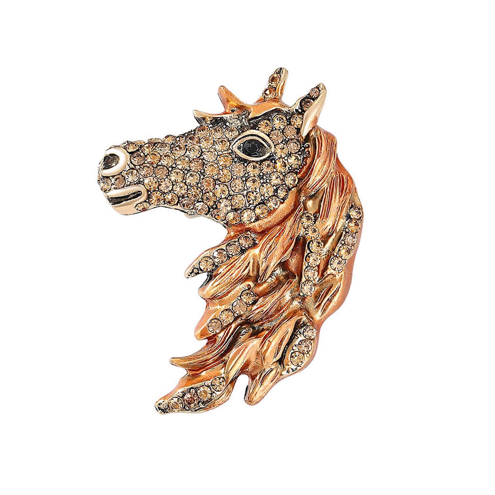 Stylish Alloy Brooch Adorned with Crystals Unique Sparkling Rhinestones Horse Head Pin Fashion Accessory Multicolor