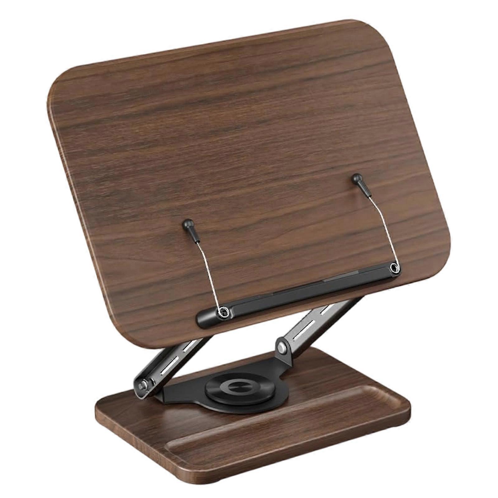 Expandable Page Holders for Heavy Books Adjustable Reading Stand 360 Rotation Ergonomic Black Walnuts Wood Mini Storage Tray Multicolor