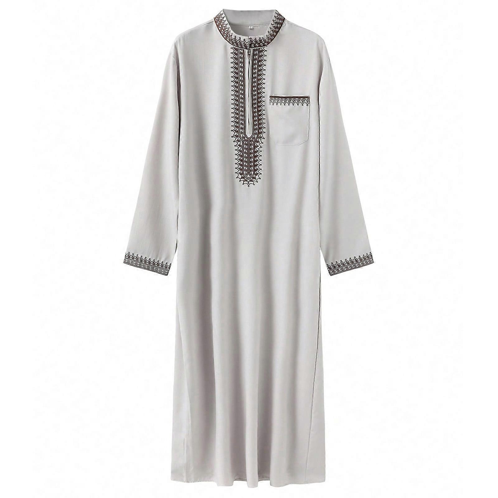 Muslims Dresses for Men Long Sleeve Dubai Shirt Kaftan Thobe Robe Gown Straight Leisure Race Style Clothing Thobe light gray XL