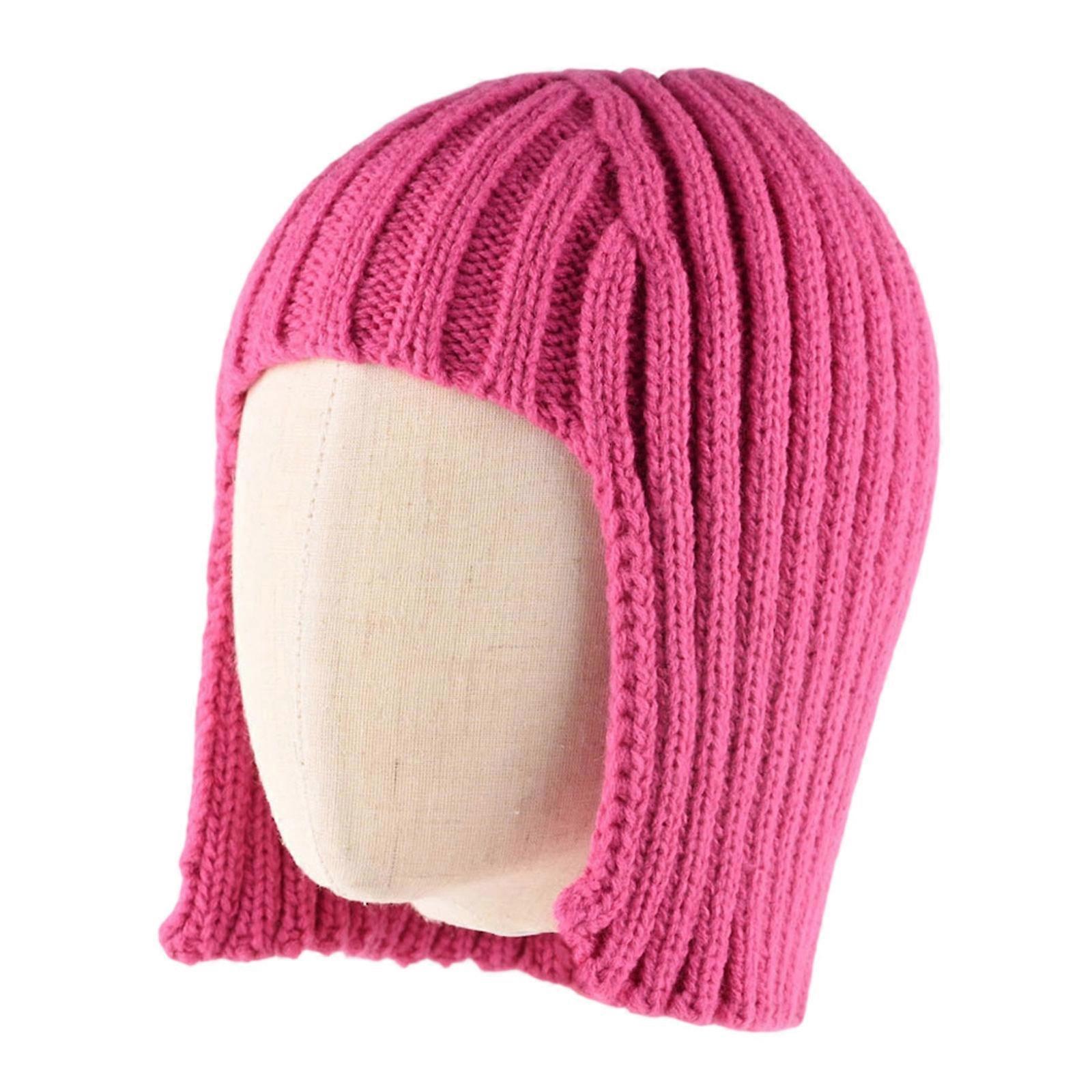 Womens Fashion Knit Hat Headwrap Unique Wig Design And Warm EarFlaps For Winter Style Photo Props Rose Red